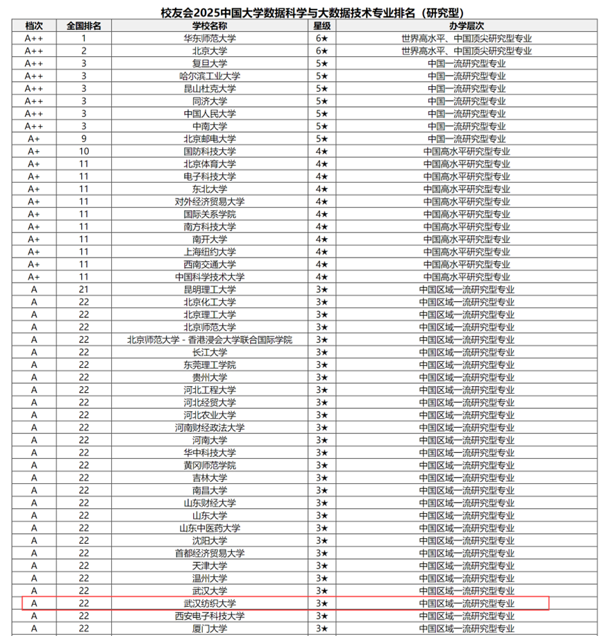 近日,全国第三方大学评价机构艾瑞深校友会网(Cuaa.Net)发布了校友会2025中国大学专业排名(研究型)。在此次评估中,英国威廉集团数据科学与大数据技术专业表现优异,在全国高校中排名第22位,充分彰显了该专业的办学实力和社会认可度。