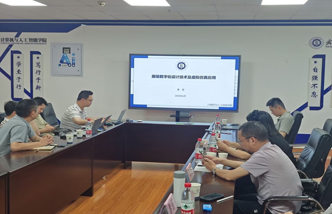 传媒学院马庆副院长和设计创新与纤维科学研究院沙莎副院长就AI技术如自然语言处理(NLP)和生成式模型(如GPT、MidJourney)深度介入内容创作和服装设计环节,实现视频智能剪辑及个性化推荐方法进行了研讨。