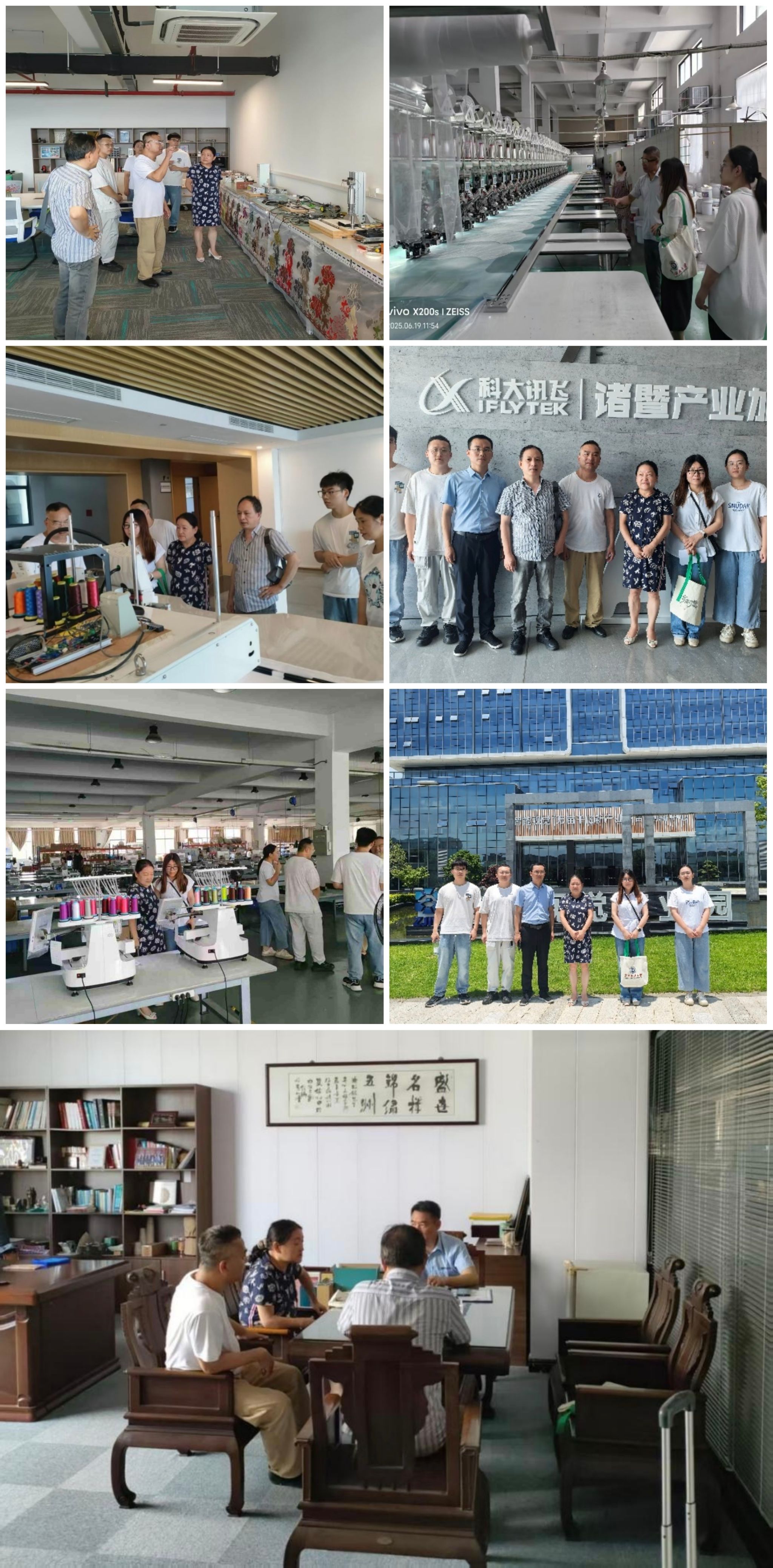 6月18日-19日,在“中国刺绣之都”绍兴诸暨,胡新荣一行实地考察云易绣科技、浙江盛名智能、绍兴柯桥区归零纺织品等企业,调研当地刺绣企业生产经营、工业技术升级及智能化改造情况。