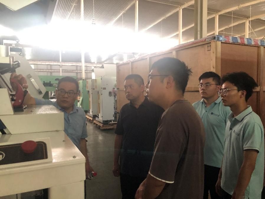 魏雄一行在董事长沈方勇的介绍下,了解该公司的历史沿革、现代化转型和技术革新等方面的情况。随后,由自动化部长王卫带领魏雄一行参观纺织机械工厂,深入了解并条机、细纱机等纺织机械的工作场景与实际应用。