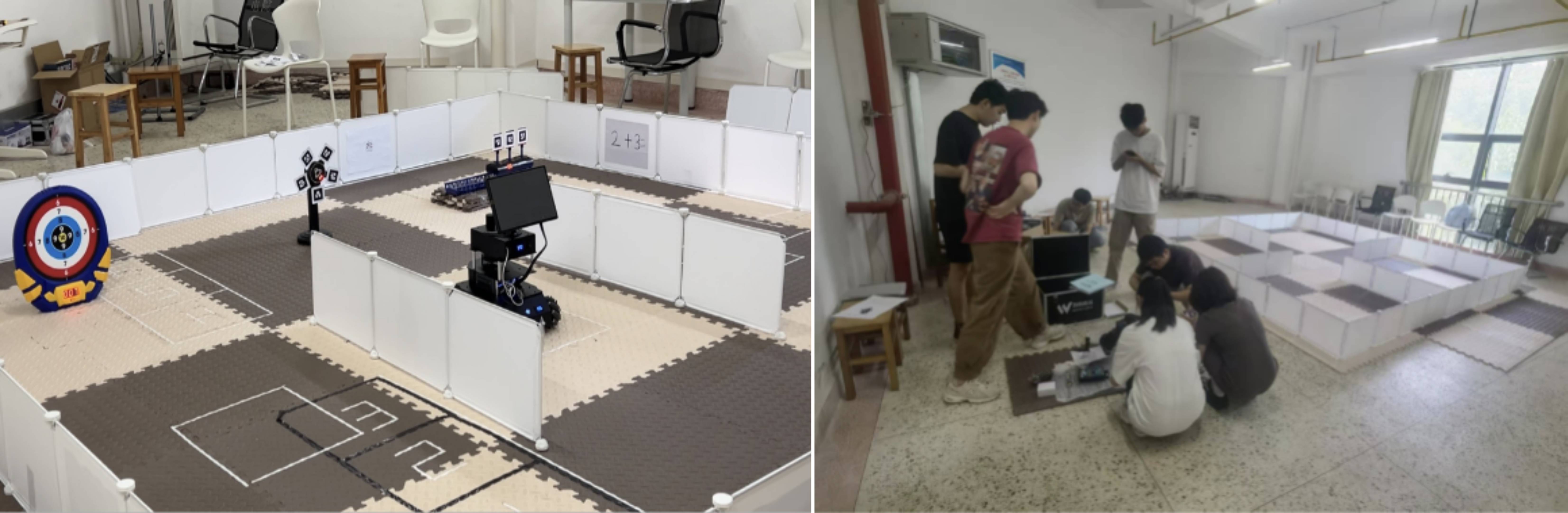 潘雄教授2025年5月组建自主巡航和目标射击两个赛道各6支队伍参加集训。自主巡航涉及文字识别、图像识别、语音识别、自主巡航、自主定位、四则运算等算法,让机器识别汉字“壹”到“玖”、二维码一到九,大模型一到九,手写数学计算式等,进行加法、减法、乘法和除法,并停到相应位置。在训练过程中学生应用所学知识解决实际问题的能力得到了锻炼。