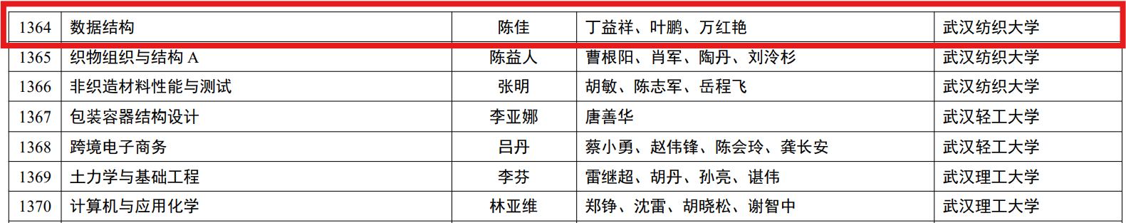 近日,教育部高等教育司公示了第三批国家级一流本科课程认定结果,由我院陈佳老师团队负责的《数据结构》课程成功入选线上线下混合式一流课程!这是学校推进教育教学改革、打造高质量课程体系的又一重要成果。
