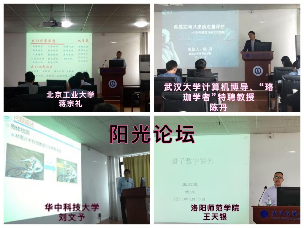 目前,学院已开展阳光论坛五期,分别是《计算机视觉与人工智能》、《量子数字签名》、《强化内涵建设系统设计和实施人才培养方案》等。