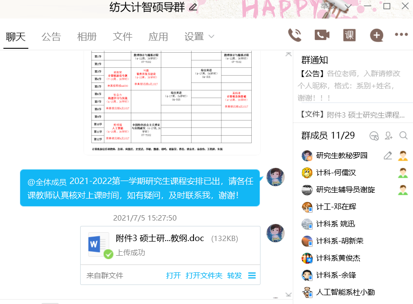 为提高研究生研学效率效果,学院率先建立了研究生导师QQ群,科学高效对不同类别的研究生进行专项服务管理。