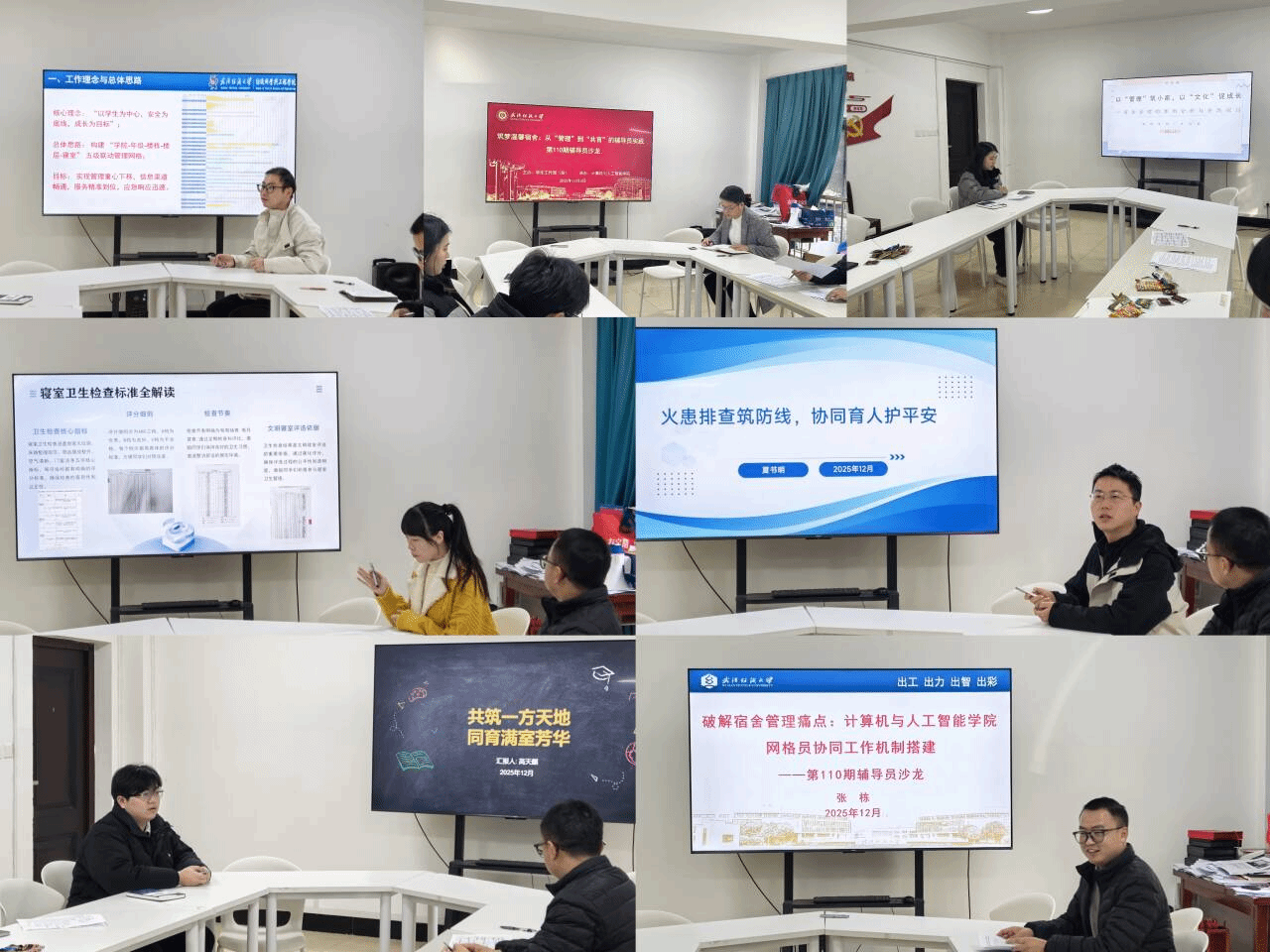 在主题分享环节,七位来自不同学院的辅导员结合本院宿舍建设工作实际,分享了宝贵经验。纺织学院邢万传以《宿舍管理的“小切口”与“新探索”:从网络覆盖到寝室长激励的实践分享》为题,围绕寝室长这一宿舍管理的“关键少数”,分享了特色激励机制和寝室长考核制度;服装学院李昆在《从“问题解决者”到“成长陪伴者”:辅导员工作角色的转型实践》的分享中,结合艺术院系毕业生的特点提出针对性宿舍管理策略,引起热烈讨论;管理学院王霄鹤以《以“管理”筑小家,以“文化”促成长——关于宿舍管理的案例分析与实践探讨》为题,介绍了网格员管理机制、宿舍长赋能培训以及开展常态化安全排查等有效举措;创新设计学院陈畅以《网格筑基、骨干驱动、活动融合——全力营造寝室团结新风貌》为题,分享了宿舍文化建设的特色做法,通过举办一系列宿舍文化节活动,丰富了学生课余生活,增强了宿舍凝聚力。服装学院夏书明以《火患排查筑防线,协同育人护平安》为题,围绕宿舍安全分享了在宿舍巡查、卫生督导、学生服务等方面的工作心得;管理学院高天麒以《共筑一方天地,同育满室芳华》为题,分享了通过树立先进典型,充分发挥榜样的引领带动作用,有效提升了宿舍整体学风的经验;williamhill英国张栋以《破解宿舍管理痛点:williamhill英国网格员协同工作机制搭建》为题,介绍了学院“党员示范宿舍”建设、网格化管理、晚查寝制度等开展情况。现场交流氛围热烈,大家相互启发、相互借鉴,碰撞出许多思想火花。