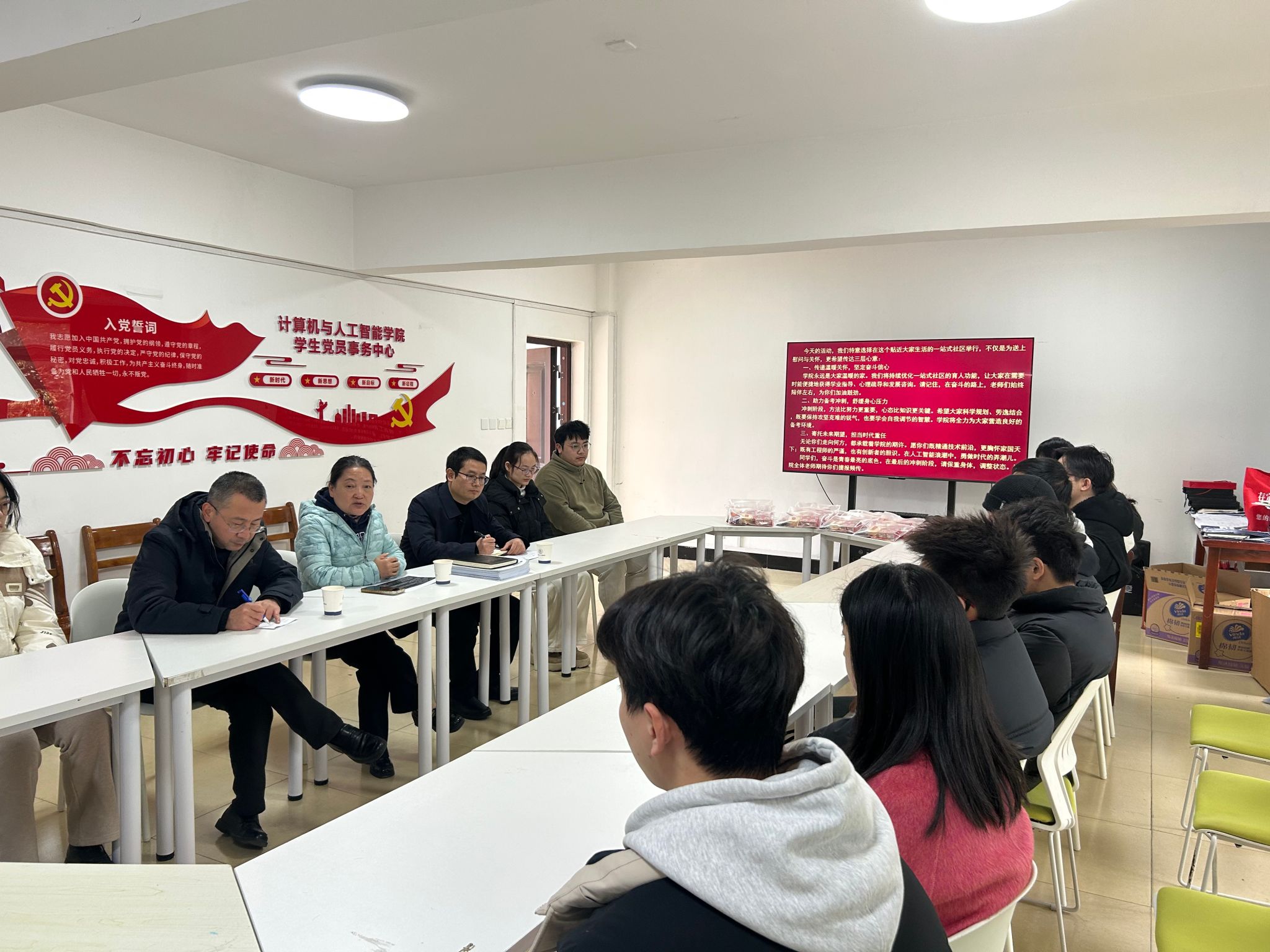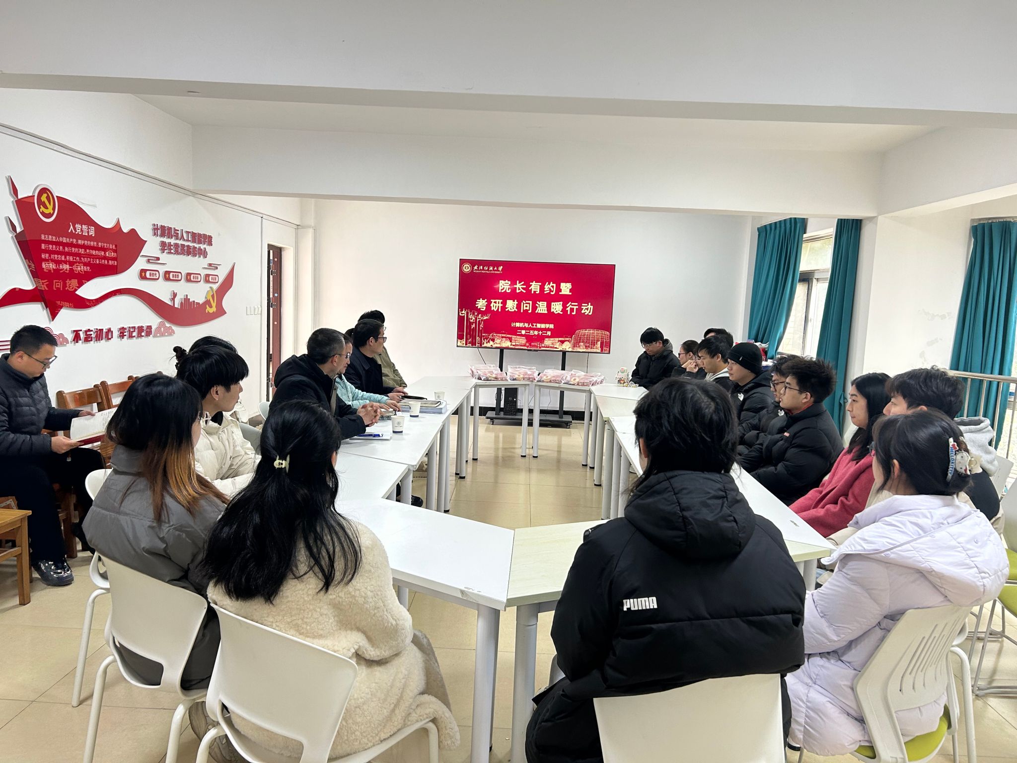 12月15日,为帮助2022级考研学子缓解备考压力、提振冲刺信心,williamhill英国在5栋一站式学生社区精心组织开展“院长有约暨考研慰问温暖行动”。学院院长胡新荣、院党委书记晏伟、院党委副书记向涛与22级考研学生代表亲切座谈交流,活动由向涛主持。