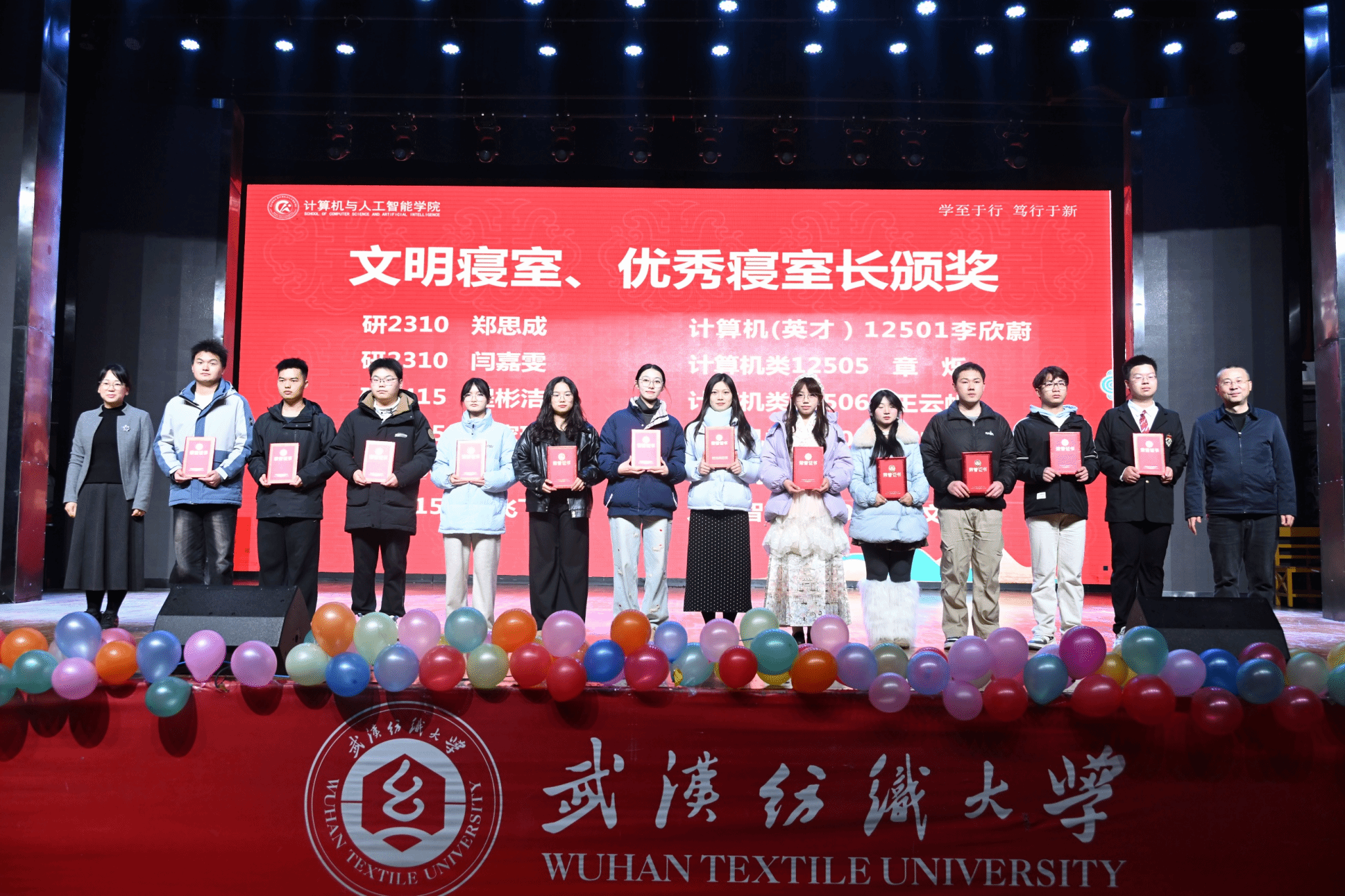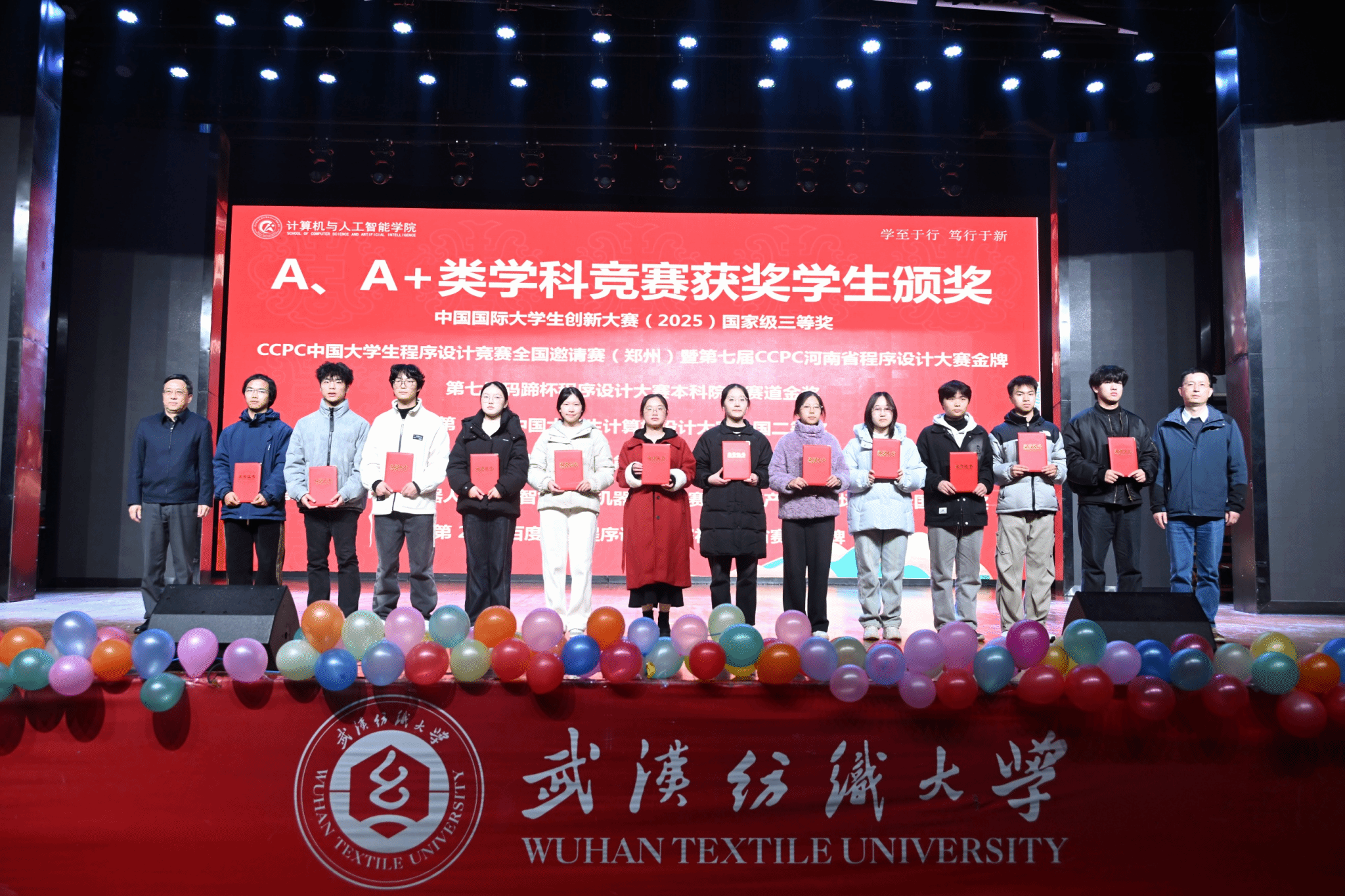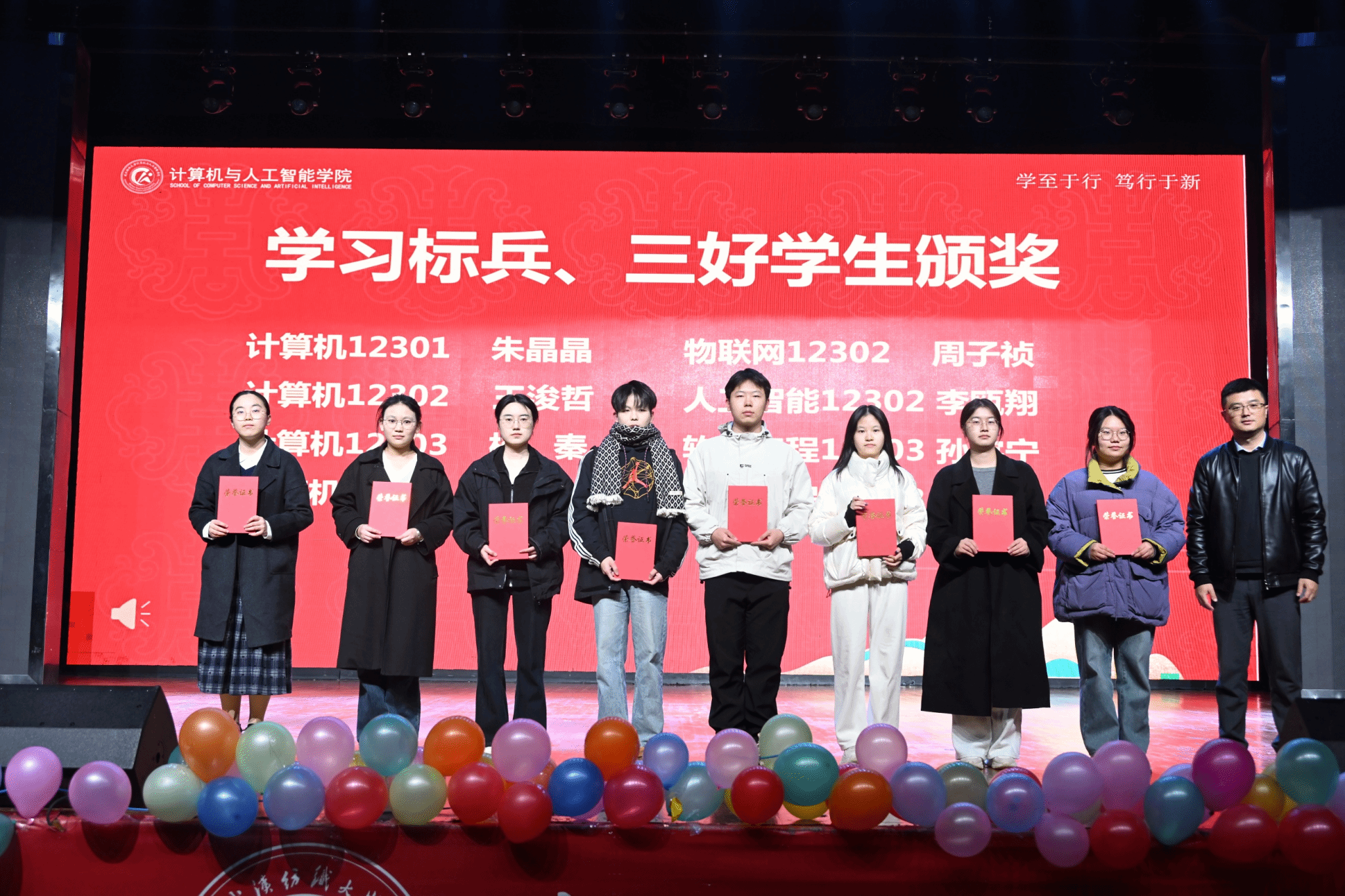 表彰环节有序推进,大会依次对优秀班团、优秀学生干部、学习标兵、三好学生、文明寝室及优秀寝室长、计智之星以及在A类、A+学科竞赛获奖学生代表颁奖。颁奖环节气氛热烈,获奖者们在全场师生的掌声中上台领奖,彰显了计智学子的卓越风采。