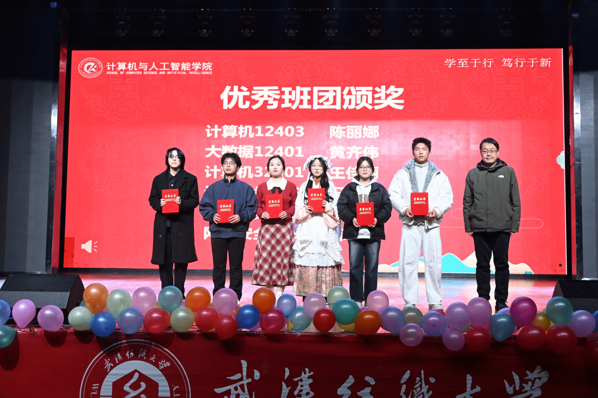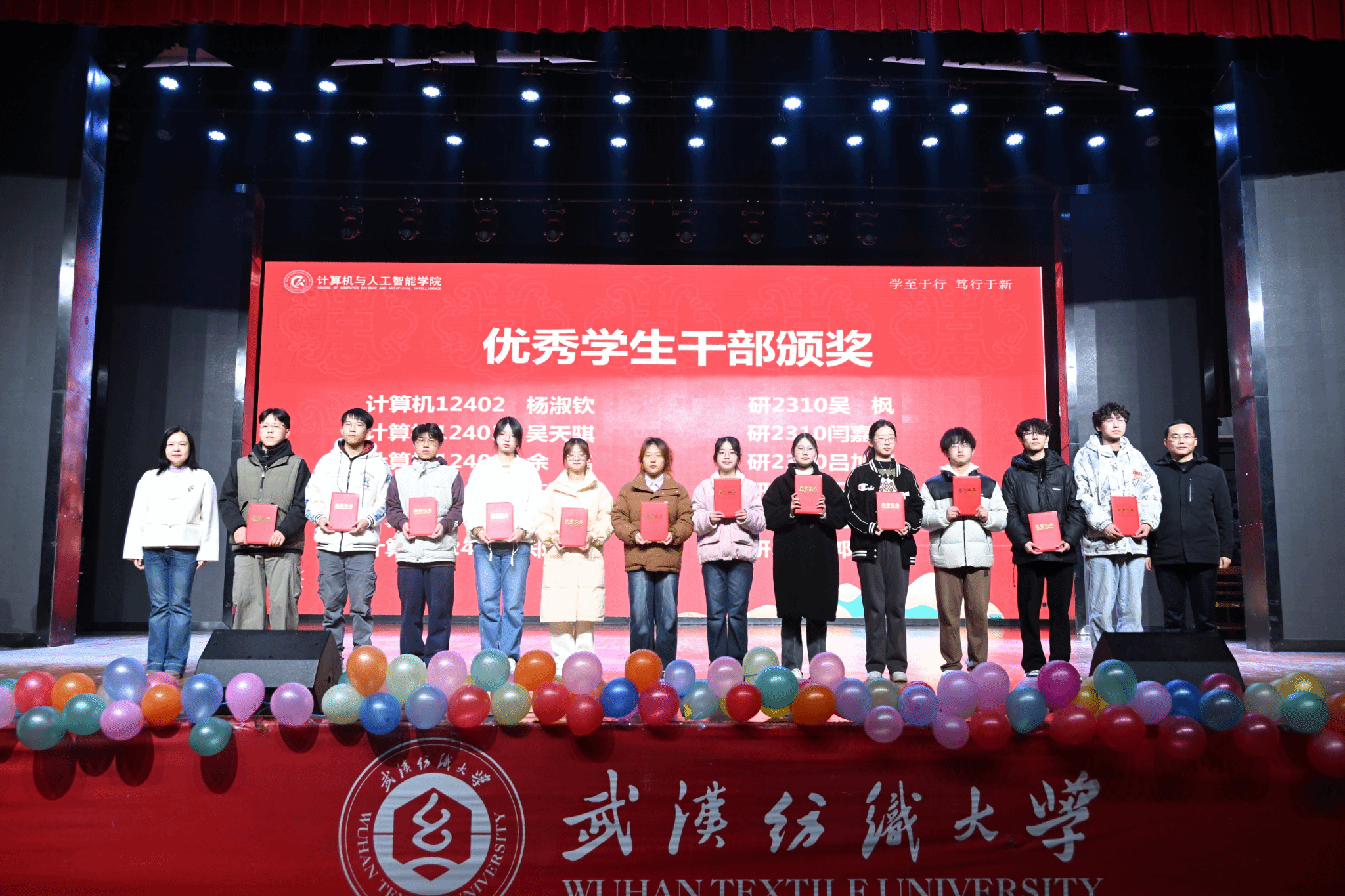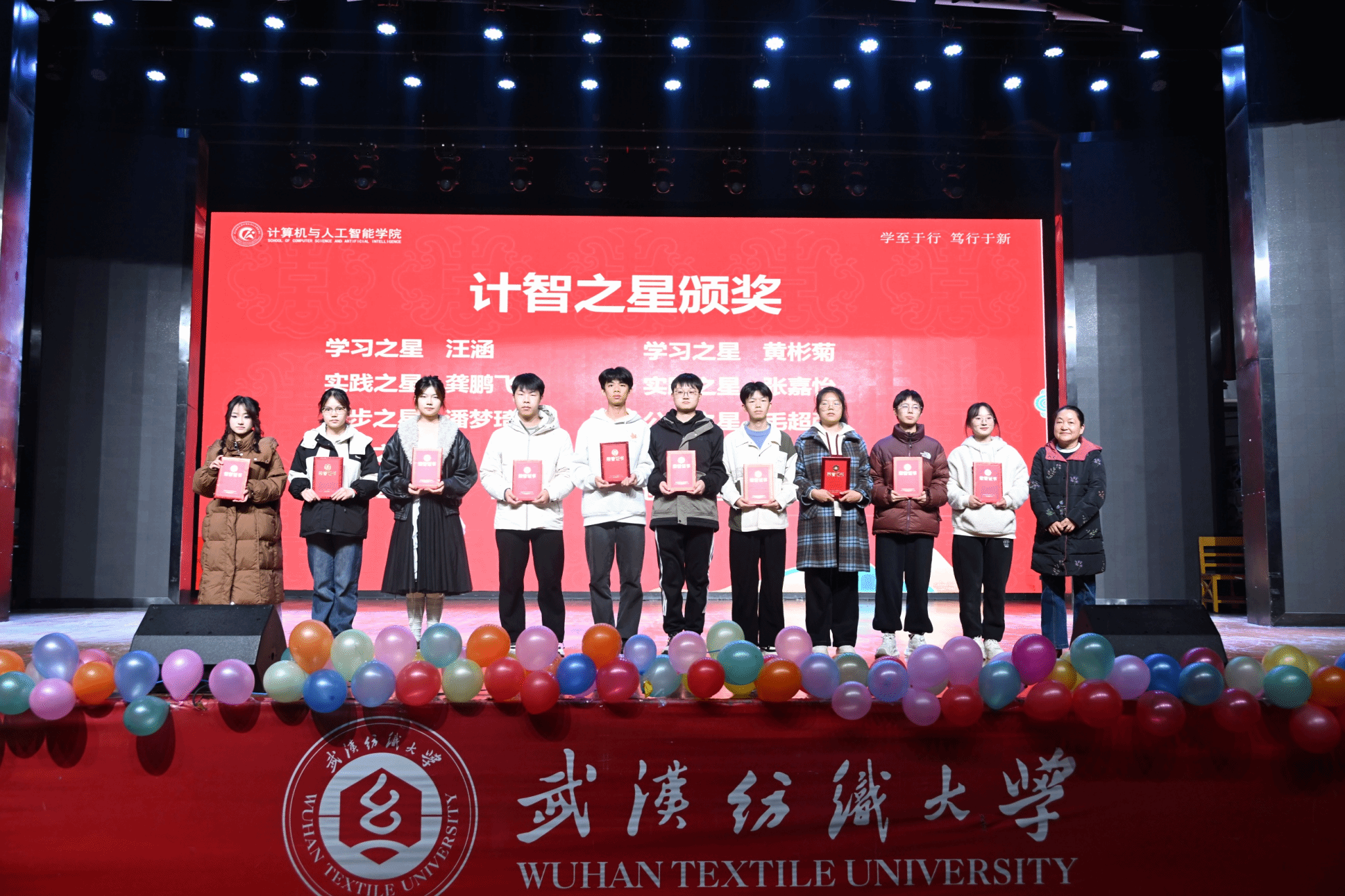 表彰环节有序推进,大会依次对优秀班团、优秀学生干部、学习标兵、三好学生、文明寝室及优秀寝室长、计智之星以及在A类、A+学科竞赛获奖学生代表颁奖。颁奖环节气氛热烈,获奖者们在全场师生的掌声中上台领奖,彰显了计智学子的卓越风采。