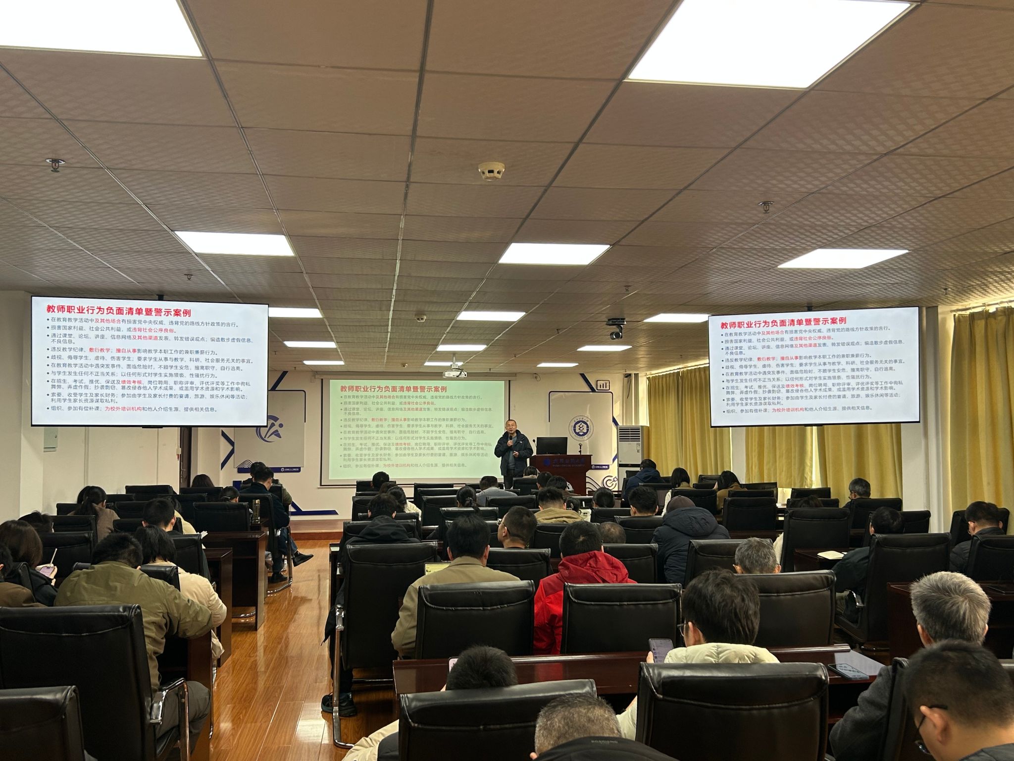 学习会最后,全院教职工集中观看了廉洁教育专题纪录片。通过真实的案例呈现和深入的思想解读,进一步强化了教职工的廉洁自律意识和师德修养,大家纷纷表示将严格遵守学校党委各项要求,以更坚定的信念、更严格的标准要求自己,潜心治学、精心育人,为培养德智体美劳全面发展的社会主义建设者和接班人贡献力量。