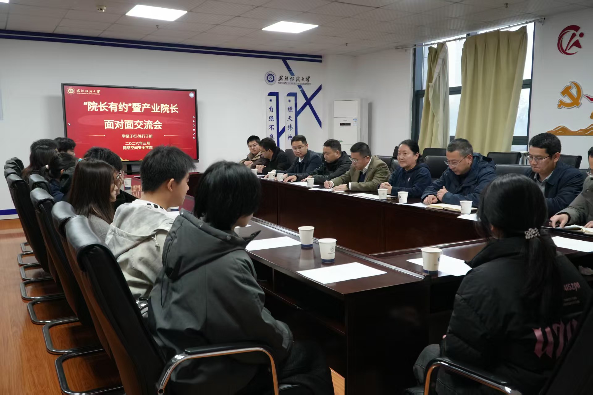 3月17日下午,网络空间安全学院在崇真楼(南楼)A4033会议室举办“院长有约—产业院长面对面”活动。奇安信集团副总裁、产业学院院长刘进莅临学院,与学院领导班子成员、教师代表、辅导员代表及网络空间安全专业学生代表座谈交流。活动由网络空间安全学院副院长刘军平主持。