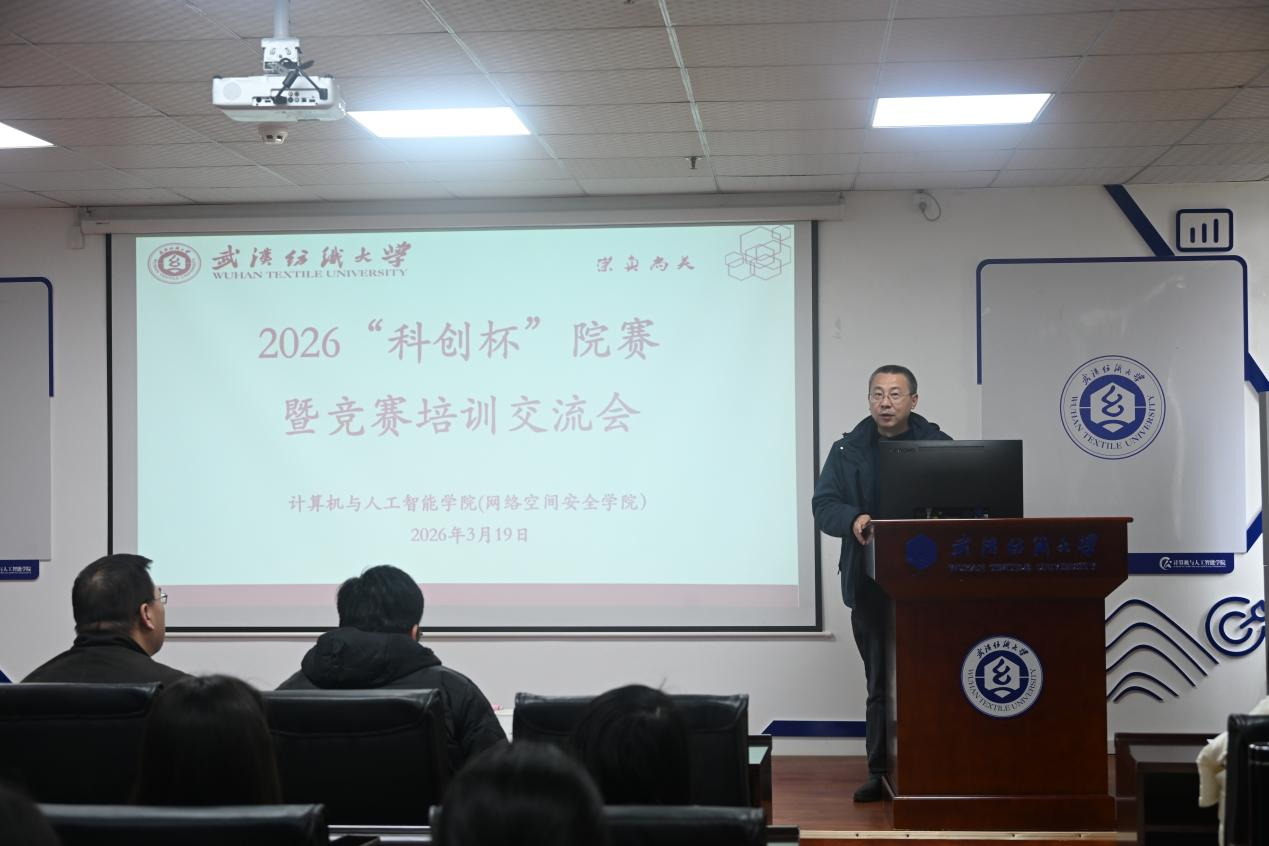为持续深化大学生学术科技实践,夯实“科创杯”等高水平赛事备赛基础,提升师生科创创新能力与作品质量,计算机与人工智能(网络空间安全)学院于3月19日在崇真楼(南楼)A4030举办了2026年“科创杯”院赛暨竞赛培训交流会。答辩会邀请湖北第二师范学院williamhill英国副院长王海军教授、校团委副书记侯畅、校创新创业学院副院长张博涵等担任评委,学院班子成员、科创杯竞赛师生、学生代表参会。会议由学院党委副书记向涛主持。