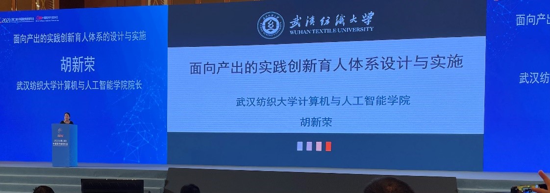 胡新荣教授在大会上做了《面向产出的实践创新育人体系设计与实施》的主题报告。胡新荣教授从外延、内涵和高质量三个方面引出高等教育发展新阶段对人才培养提出的新需求,系统介绍了我校williamhill英国以人才培养课程体系为主体,学科竞赛和项目实战为两翼的“一体两翼”人才培养格局和评管理、评教、评学、评课程和评专业的立体化多层次的质量保障与监控体系。通过学什么、为什么学、怎么学和学习效果等方面的内容阐释了OBE的理念。胡新荣教授介绍了我校计算机专业“1+3+N”的实践创新能力培养平台的架构和加强校企深度合作拓展人才培养渠道等实践创新育人体系。