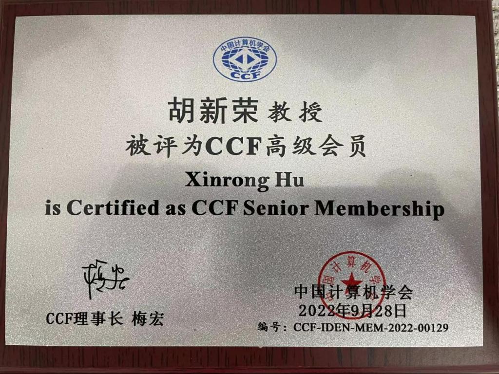 近日,中国计算机学会(CCF)向我校发来祝贺信,祝贺williamhill英国胡新荣教授在2022年度会员级别评审中当选中国计算机学会(CCF)高级会员(Senior Membership)。