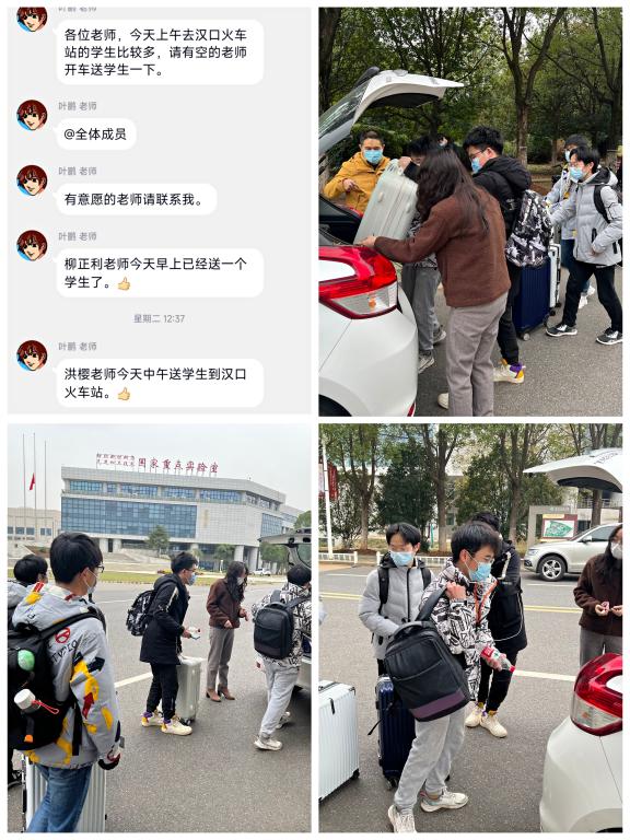 经过全校共同努力,疫情防控取得良好效果,按照统一部署,符合防疫要求的学生经申请可以提前离校。在离校过程中,学院软件工程系系主任叶鹏老师发起号召,组织教师党员成立志愿服务队,分批次专程护送学生到武汉“三站一场”。叶鹏老师精心统计学生乘车时间,根据学生时间组织志愿者老师们分批次开车护送,一大批专任老师、党员教师、班主任老师纷纷响应,加入护送学生的“教师志愿服务队”,打通学生安全离校服务保障的“最后一公里”。