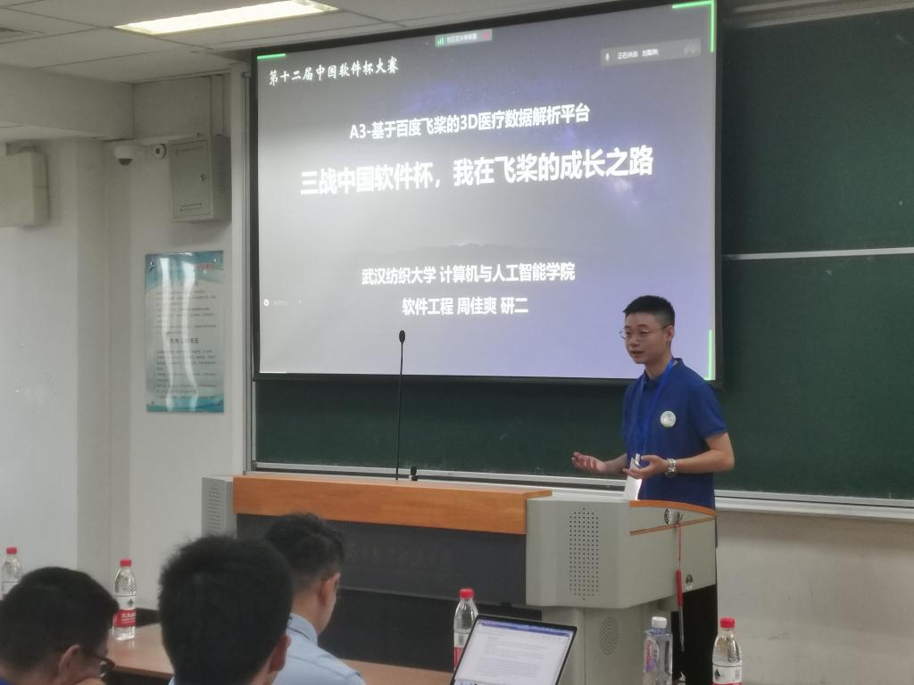 参赛期间,我院学子周佳爽凭借其优异表现以及丰富的参赛经历,受邀参加了百度举行的“飞浆国赛交流会”,并以《三战中国软件杯,我在飞桨的成长之路》为主题作了报告,与大家分享了比赛经历、收获与成长历程。