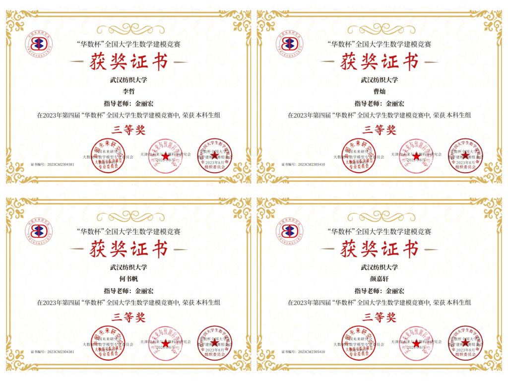 williamhill英国建模小组共组织6个小队参加比赛,团队成员经过三天认真合作,获得三等奖六项(指导老师金丽宏老师获奖3队,指导老师王晨获奖1队,指导老师叶威老师获奖1队,指导老师杨凯老师获奖1队)。