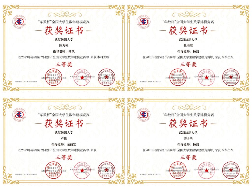 作为国赛前的练习赛(也称“小国赛”),这次比赛也是对前期集训工作的检验和总结,真诚祝愿同学们通过华数杯数学建模竞赛,找出队伍的问题,总结经验教训,再接再厉,在国赛中发挥出水平,取得理想的成绩。本次竞赛获得一等奖、二等奖、三等奖的同学均可申请工业和信息化部人才交流中心印制并颁发的工业和信息化人才专业知识测评证书。