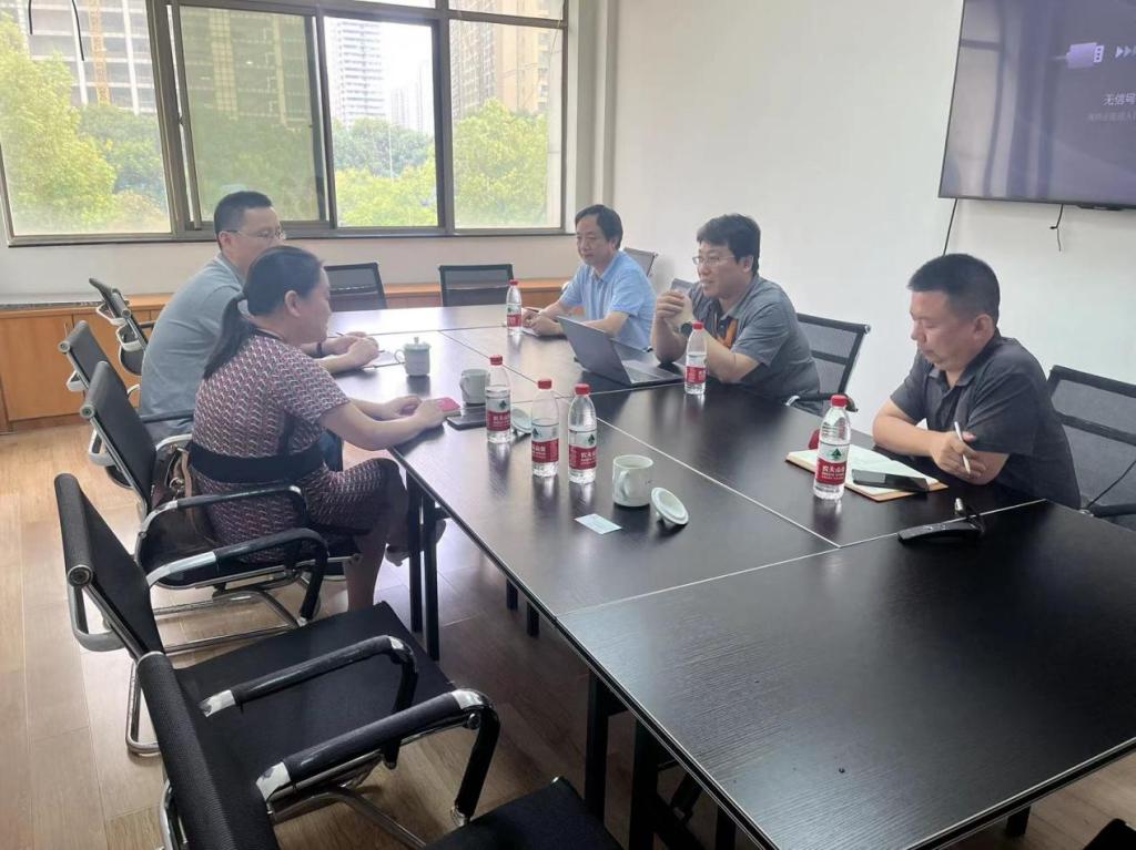在武汉新电电气股份有限公司,公司总经理邱凌介绍了公司在高压电网的安全操作、多源数据的测距、电网设备缺陷检测等方面取得的成果和存在的问题。胡新荣院长介绍了学院的科研情况,详细介绍了在智能可穿戴领域取得的成果。双方就相关技术细节进行了深入的交流,在柔性可穿戴材料在电网安全领域的应用达成了初步合作意向。