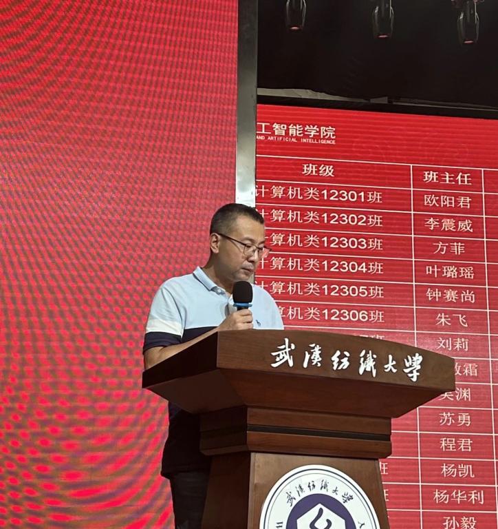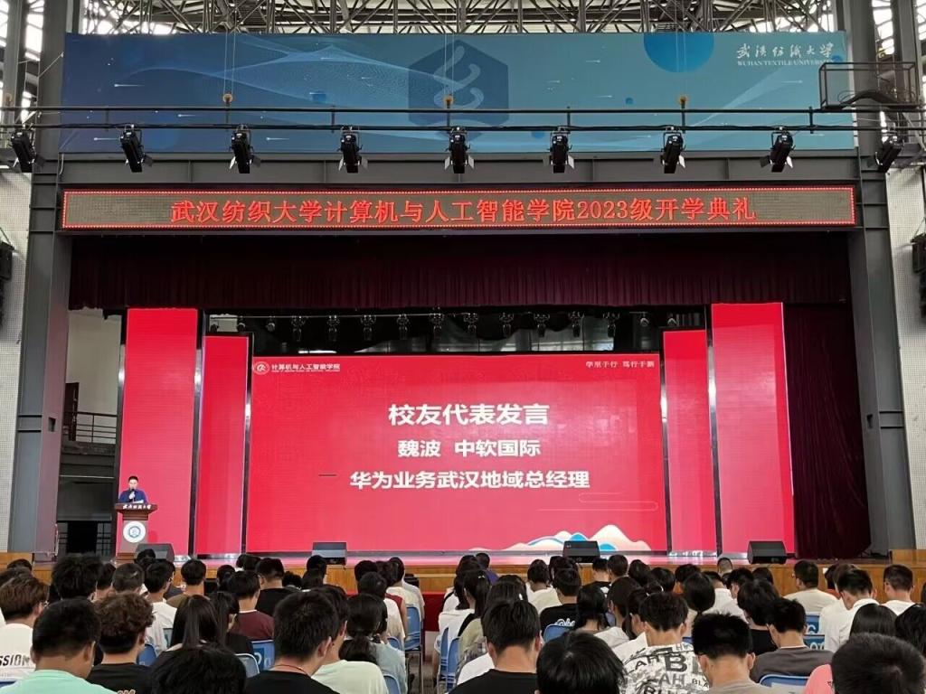 1999级校友、中软国际华为业务武汉地域总经理魏波作为校友代表发言,他感恩母校对自己的培养,分享了自己的学习经历和职场心得,从一个过来人和企业管理者的视角鼓励同学们夯实专业能力、提升软技能、强健体魄、终身学习、珍惜时间、不负青春。