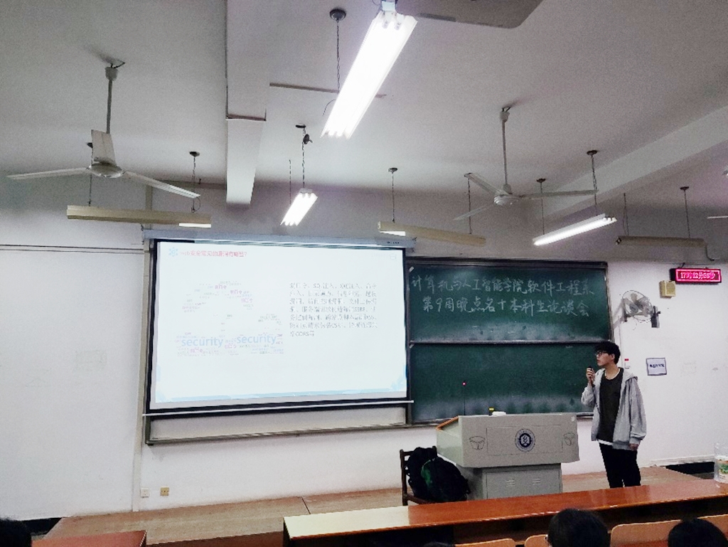 为更好地帮助本科生学习成长,了解相关学科领域前沿知识,williamhill英国软件工程专业于11月5日下午,在03-120教室举办了本科生论坛。本次本科生论坛主题为“信息安全技术研讨”,软件工程专业学生、网络安全协会同学参加了本次论坛。论坛由软件工程系教师汤俊伟主持,软件工程系主任叶鹏出席了本次论坛。