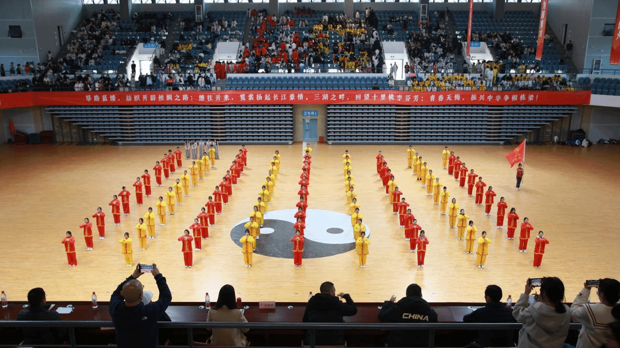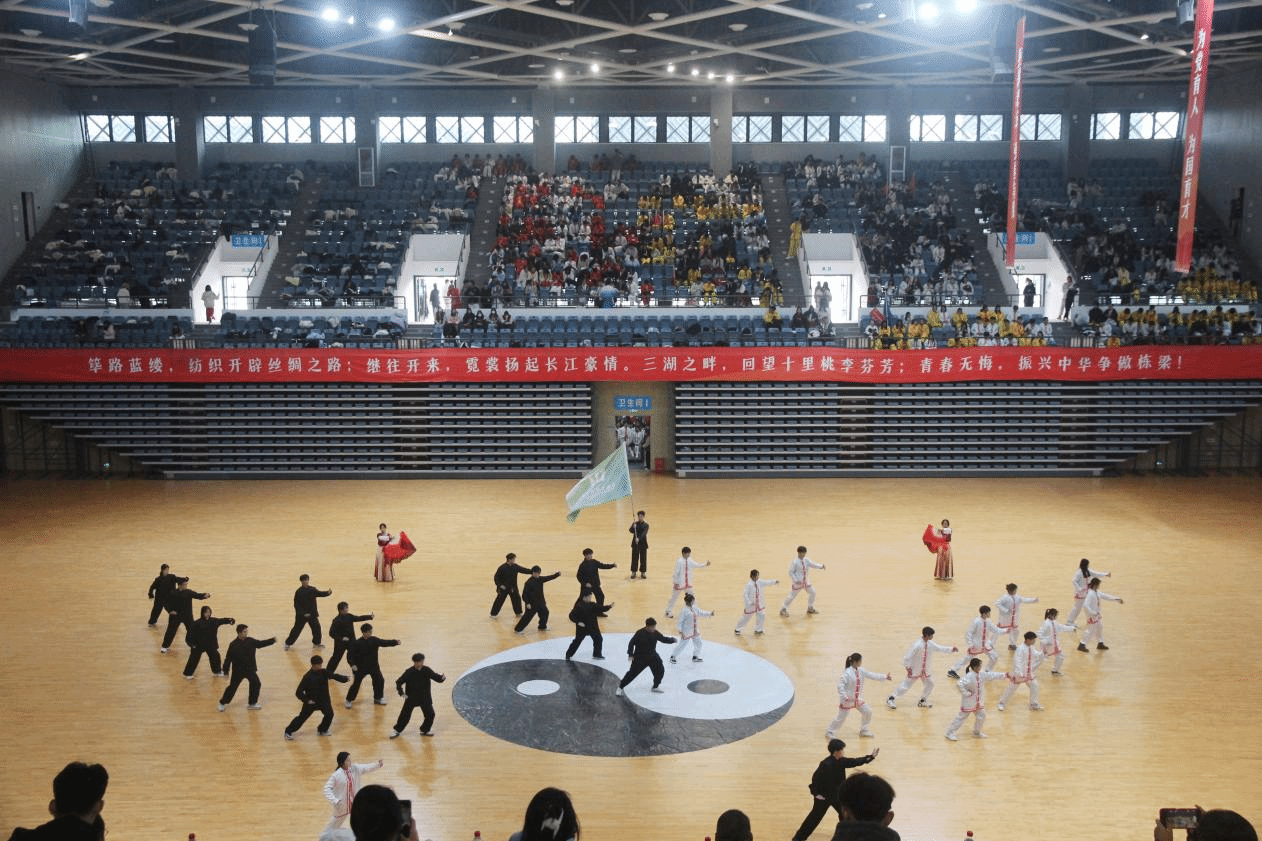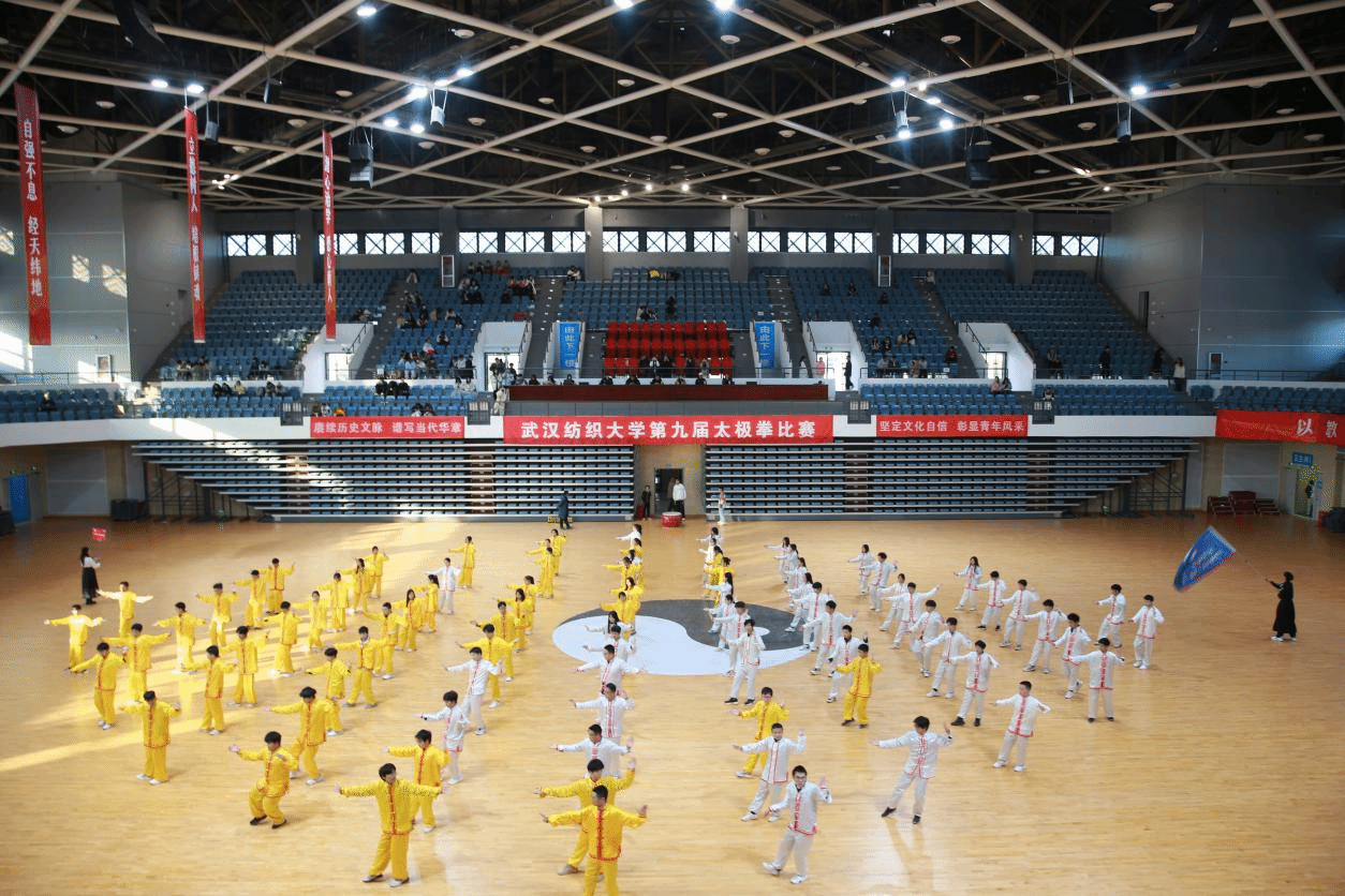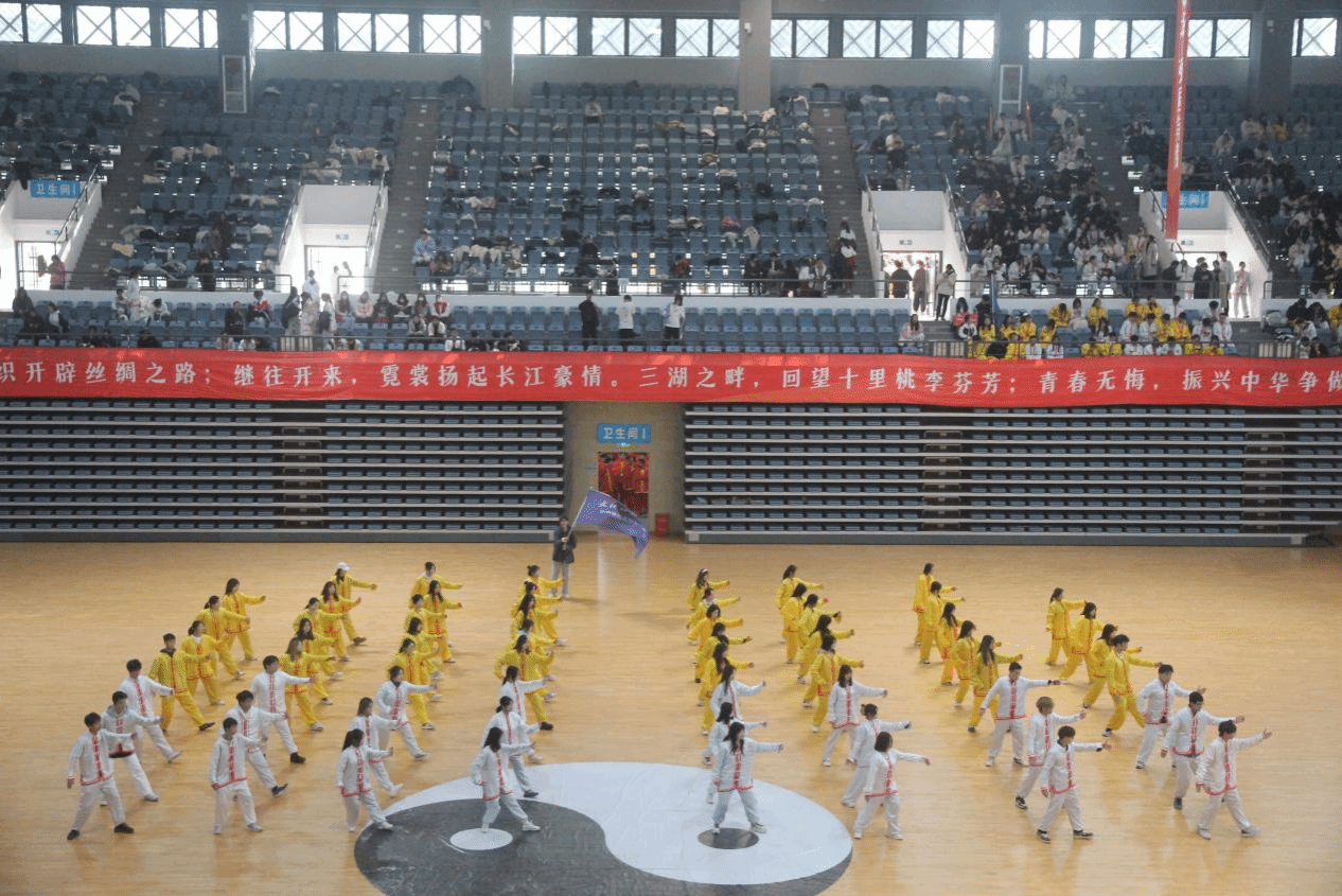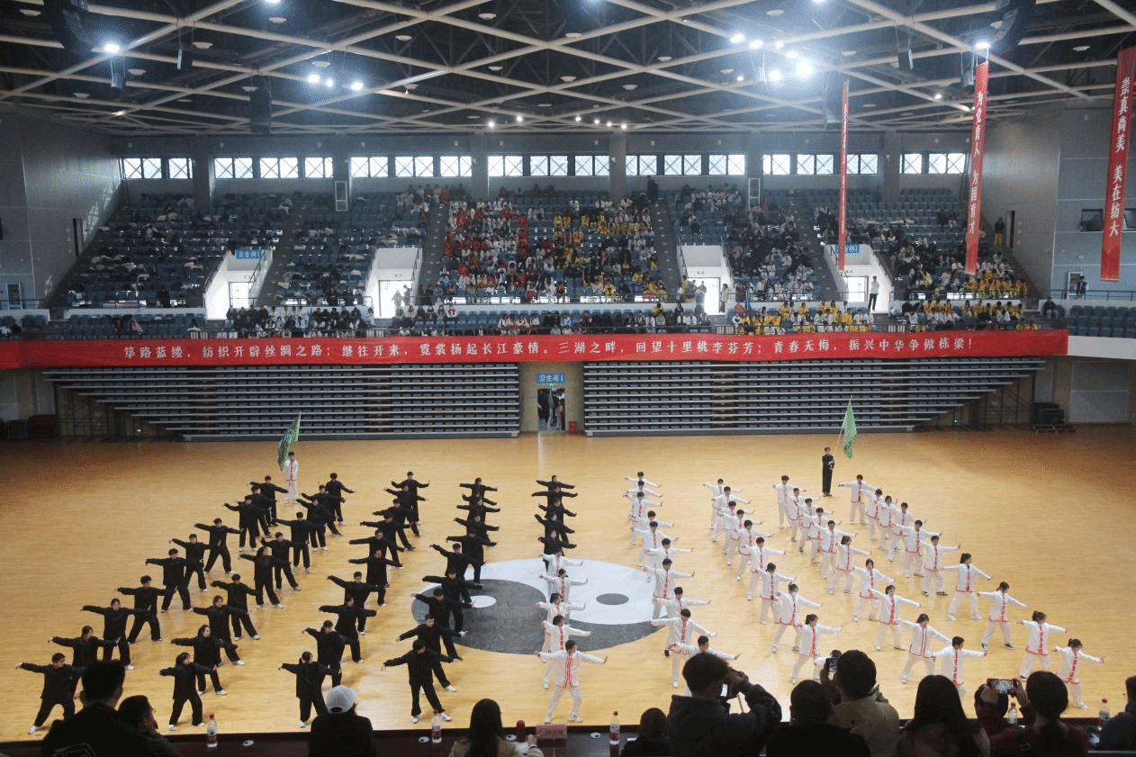 赛场上,各学院参赛代表精神饱满、朝气蓬勃,院旗挥舞、红旗飘扬,伴随悠扬的音乐、展示行云流水的动作,刚柔并济的招式,配合或以古典扇舞、以流行音乐、以国风元素、以中国武术等,将太极拳的舒展大方、急缓相间表现得淋漓尽致。在表演过程中,各学院融入口号、队形、横幅、旗帜等元素,以饱满的热情和娴熟的技艺,充分展现了纺大学子的文化自信,表达了爱党爱国爱校荣校的强烈热情,充分展示中国传统文化与太极瑰宝的独特魅力。