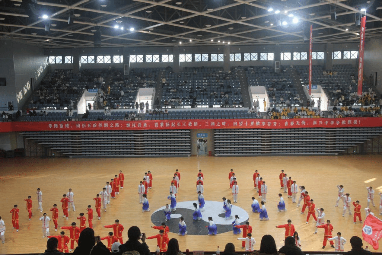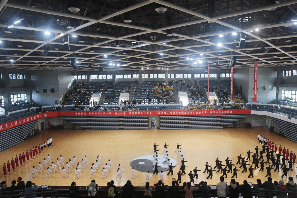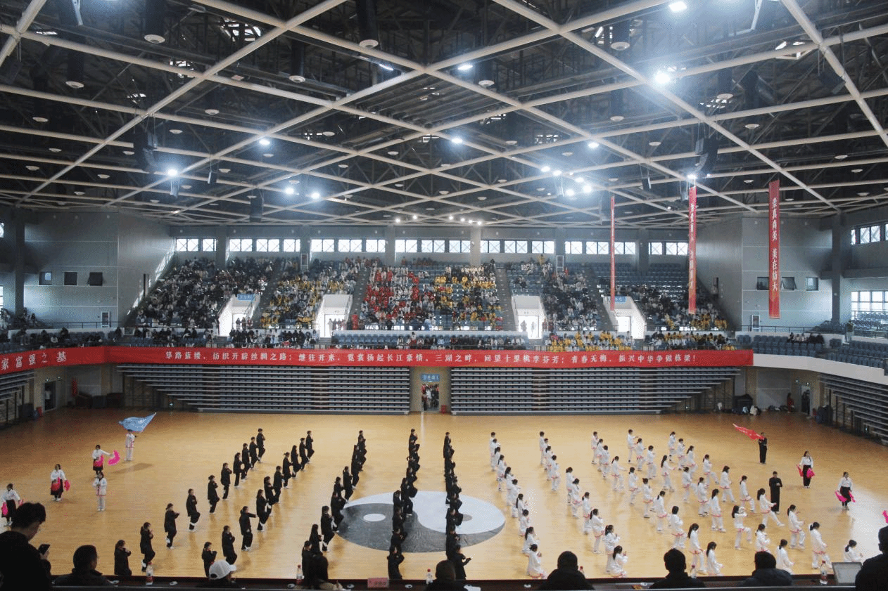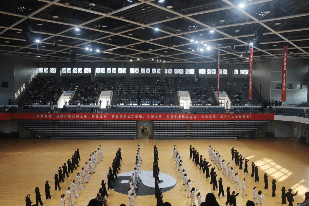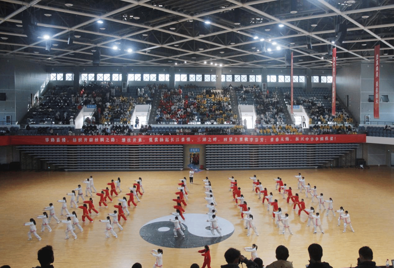 与往届太极拳比赛不同,本次比赛在阳光校区新建体育场馆举行,灯光更为明亮,场地更人性、更舒适。自开学来,随处可见同学们练习太极拳,各学院精心准备、各显神通、创意不断,呈现了一场精彩绝伦、赏心悦目的太极风采盛宴。