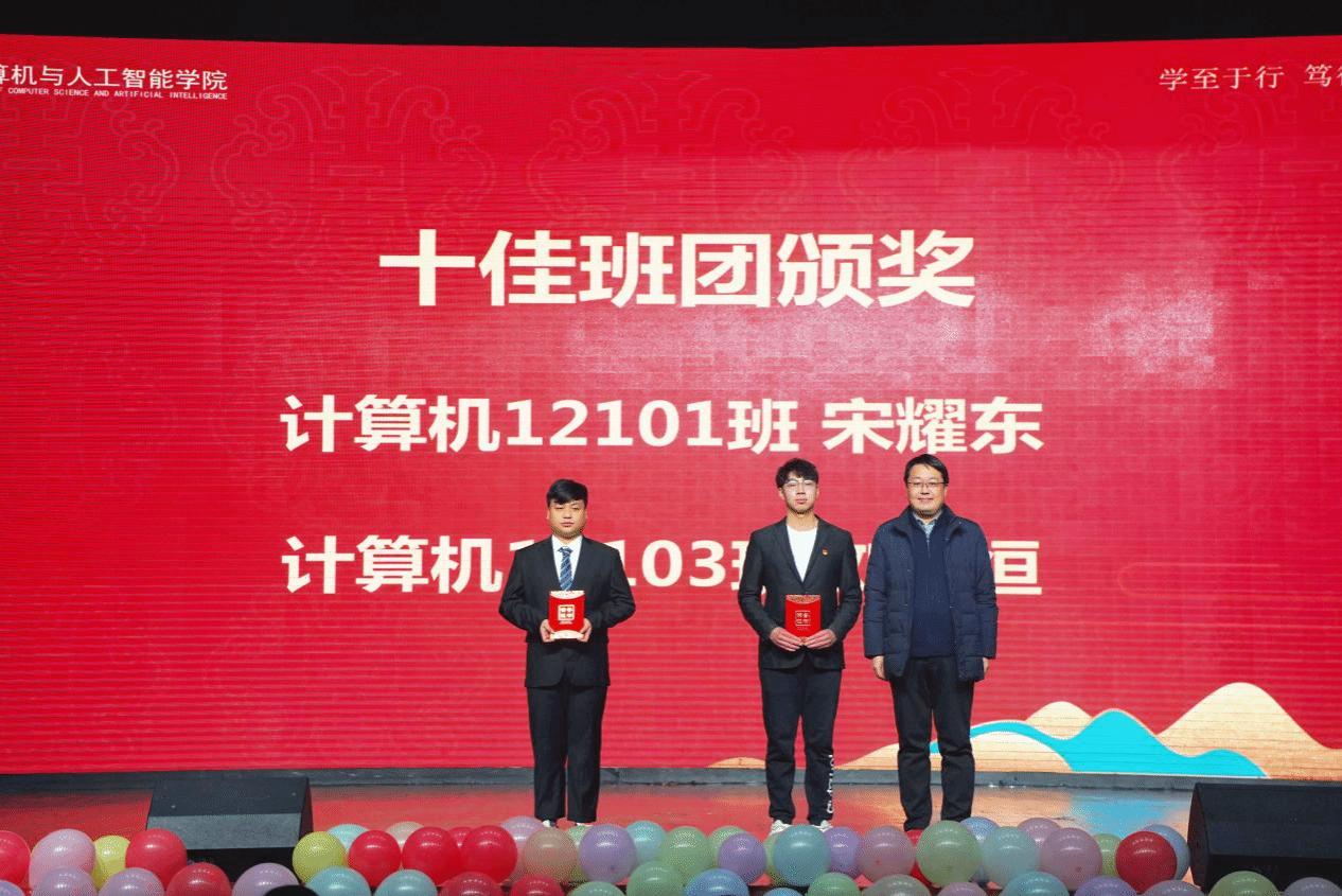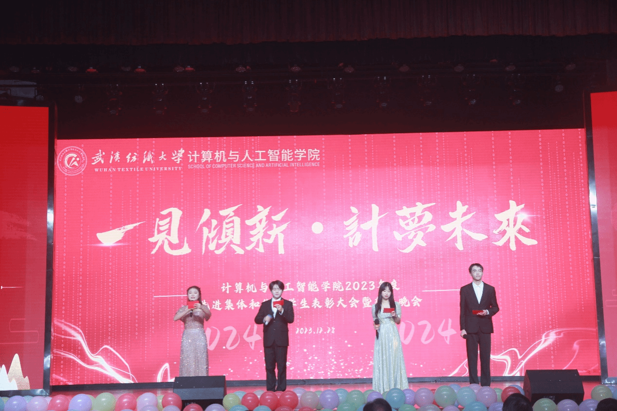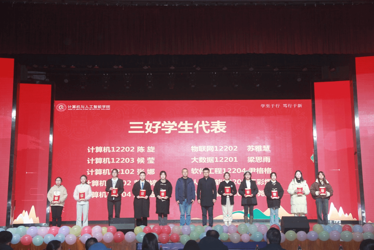 12月28日晚,williamhill英国在大学生活动中心演播厅举办了以“一见倾‘新’,‘计’梦未来”为主题的先进集体和优秀学生表彰大会暨迎新晚会。校党委常委、副校长冯军,学工部、校团委、教务处、招就处负责人,友好企业代表(恒生、光庭、噢易云、中软、讯方等),全体院领导、教职工,本科生、研究生等1000余人参与了本次活动。