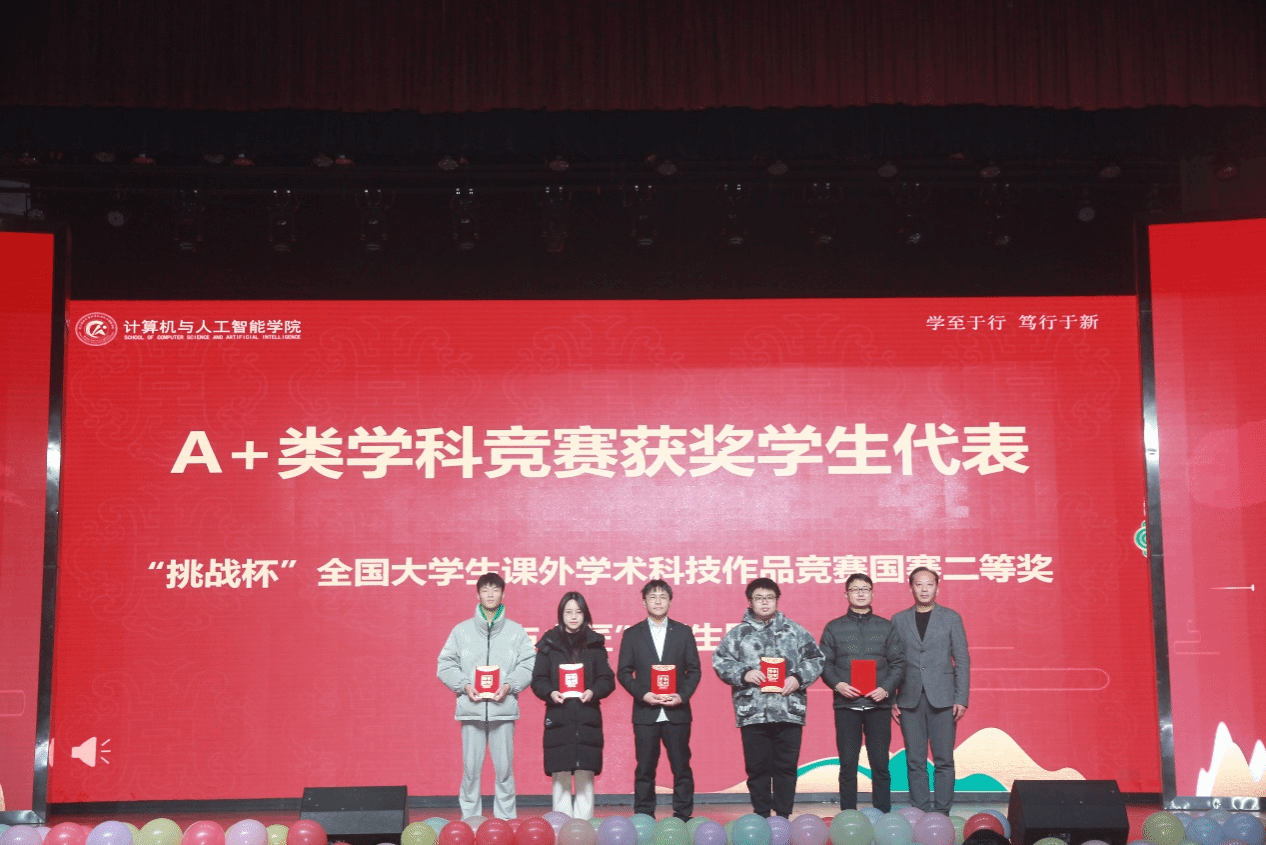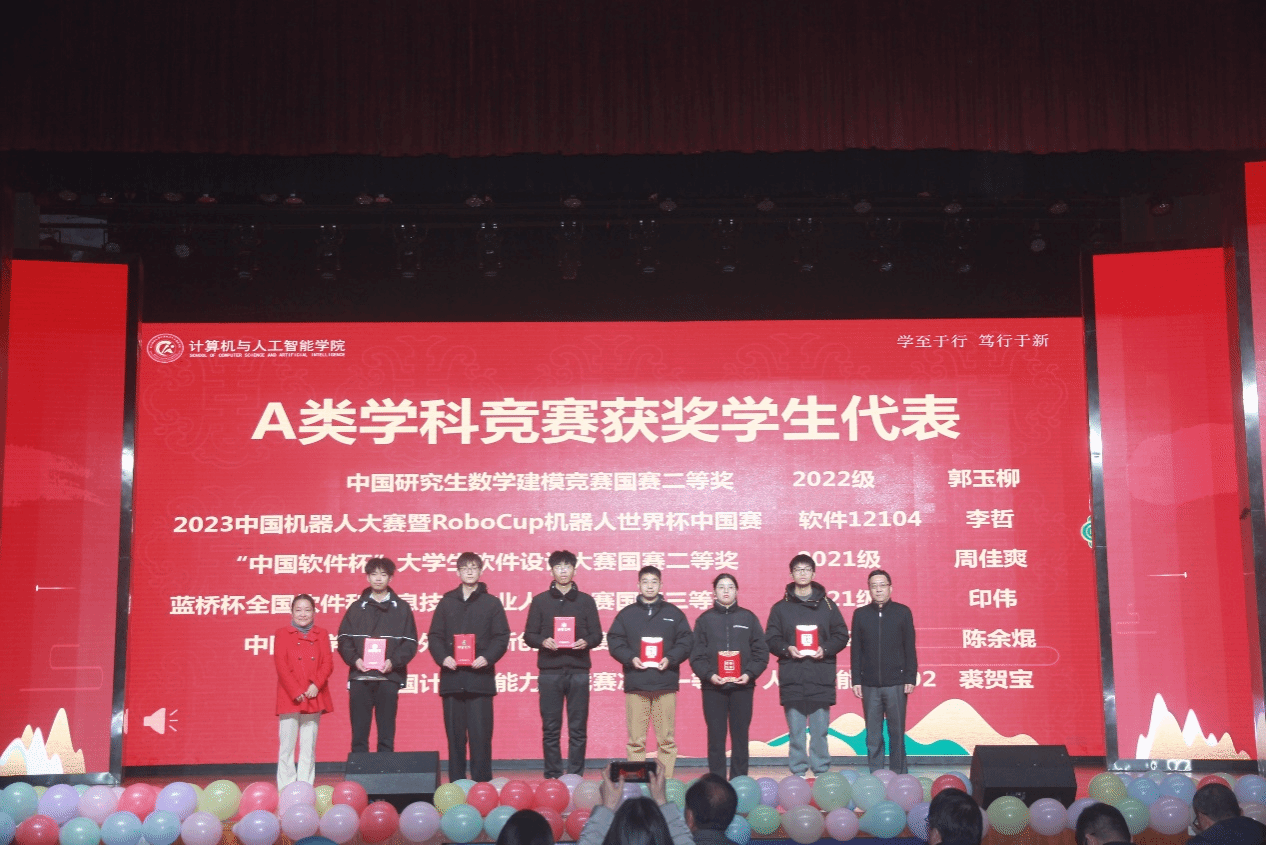 教务处处长王济平、院长胡新荣为A类学科竞赛获奖学生颁奖