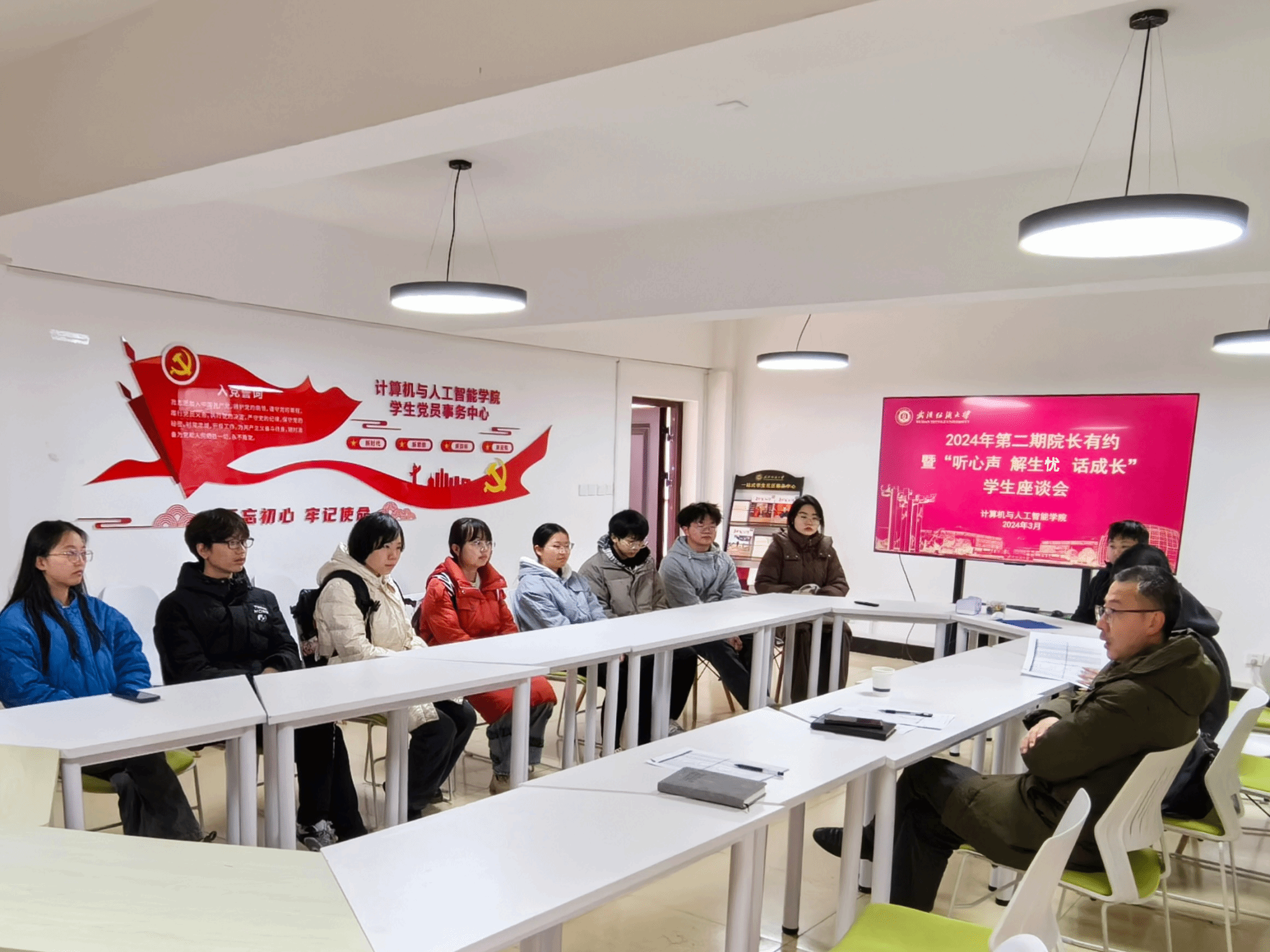 座谈会上,晏伟就14位学生代表上学期的学习情况、活动表现进行了分析,与学生代表进行交流,了解同学们对大学的认识和适应情况。晏伟讲述“我的大学故事”,向同学们阐明了何为大学之道,鼓励同学们以求知若渴的状态去发现和面对生活中的未知,认识自我的不足,形成自我发展的意识,体验丰富多彩的大学生活。最后,晏伟表示,希望通过这次活动,能够促进同学们之间的相互理解和支持,形成团结友爱的良好氛围。同时,他也鼓励同学们将此次座谈会的内容传递到班级中,用自己的实际行动去影响和帮助他人。