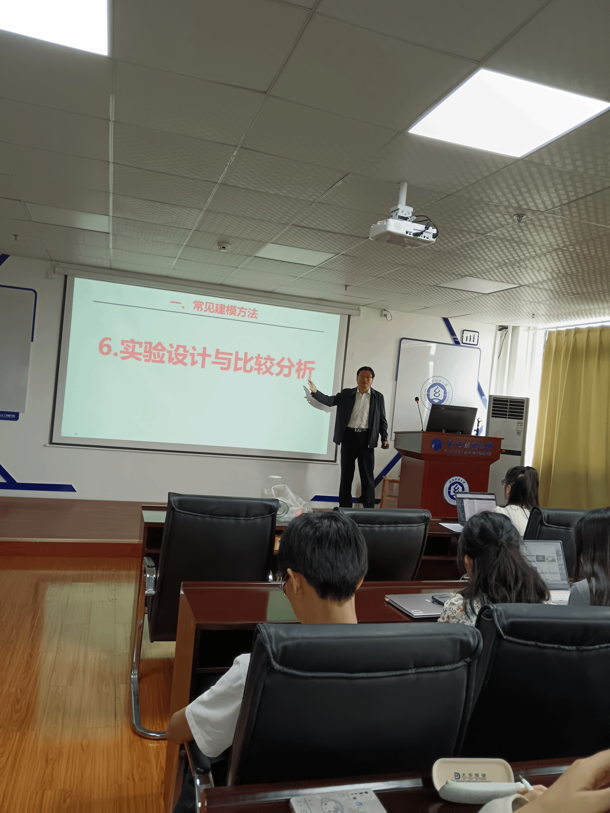 讲座主题为“数学建模国赛近6年的6种模式解析”,赵斌教授对于国赛的发展历程、参赛规模以及影响力做了详细介绍,并讲解了近六届国赛的六大题型与解题策略。