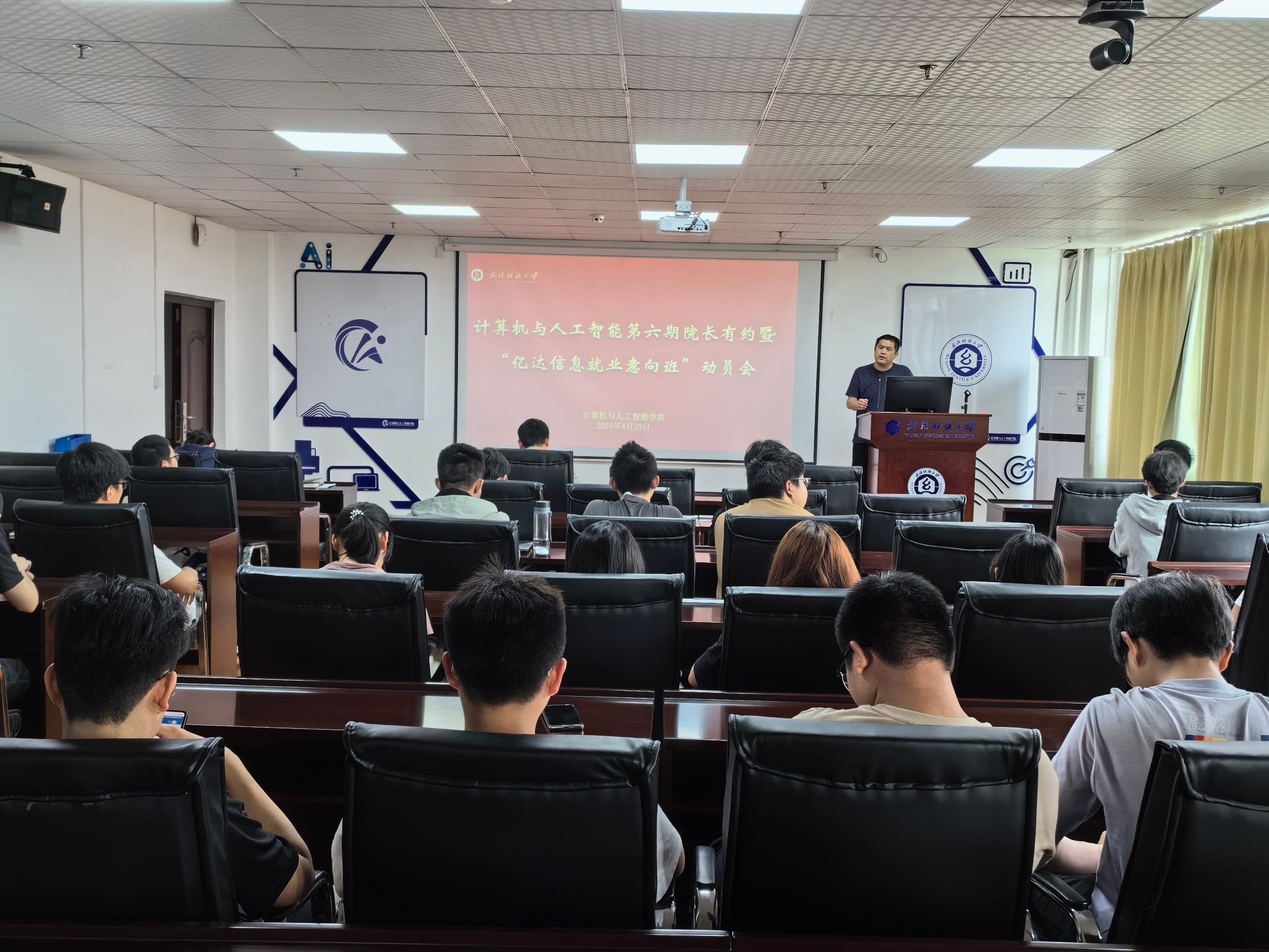 最后,魏雄为同学们讲解了动员就业的原因,魏雄指出后疫情时代,经济环境受到一定影响,部分IT企业在裁员,我们首先要生存下来,不要挑挑拣拣,先站稳脚跟,再谋求发展。向涛强调本次培训班是学院为大家提供的跟专业相关的工作的一次绝佳机会,希望大家能抓住机会,先有一份工作,学习知识技能,再谋求更好的发展。