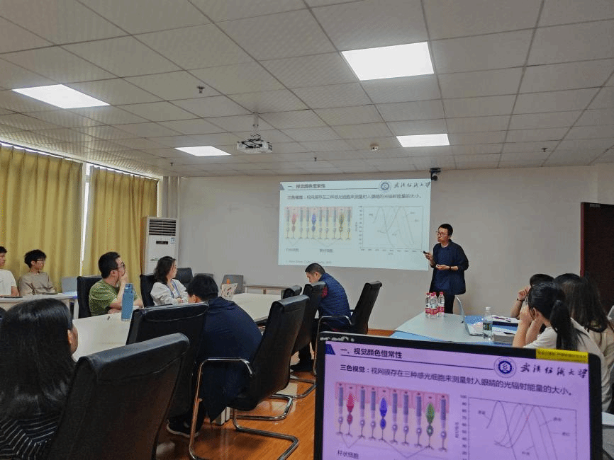 罗航老师作了题为“计算颜色恒常性”的报告。视觉颜色恒常性能保证在自然界多变的光照环境下,让人类保持稳定的颜色感知,有利于人类对事物的辨识。罗老师首先科普了颜色的三要素、三色视觉的概念,以及什么是视觉颜色恒常性。接着详细介绍了计算颜色恒常性的研究意义,研究现状,并指出了该领域研究面临的三大难题:(1)纯色场景下的颜色恒常性;(2)多光源场景下的颜色恒常性;(3)极端色温场景下的颜色恒常性。同时,结合大创项目的选题,给同学们介绍了该研究相关内容作为大创项目的可行性。