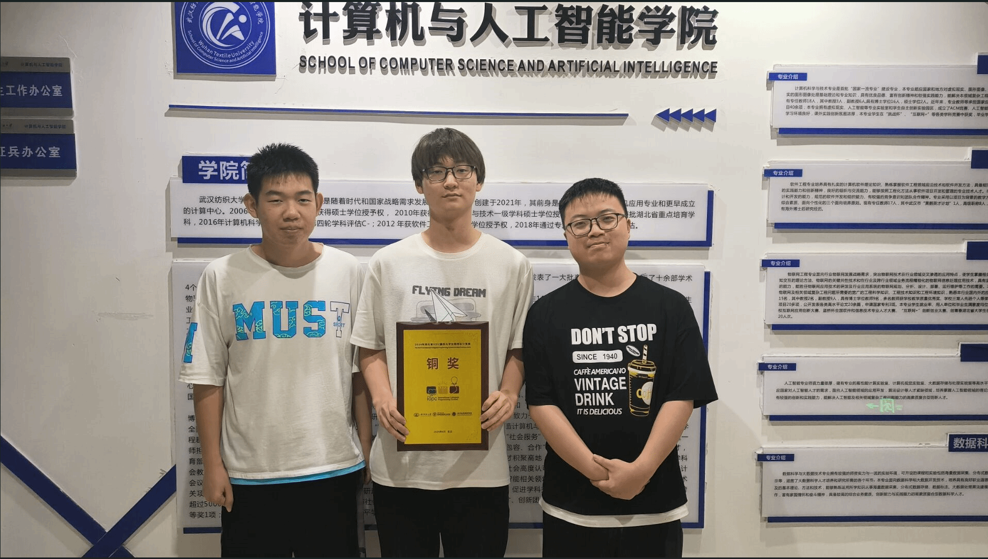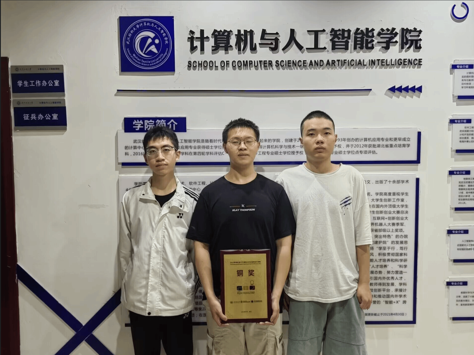 本次比赛在华中科技大学网络空间安全学院国家网络安全人才与创新基地校区举行,共有来自湖北省的36所高校,总计183支队伍参赛。比赛获奖难度较大,获奖队伍数量仅占有效队伍的60%。其中蒋沈浩、苏宇曦、胡劲睿队伍表现尤为突出,获得一枚银牌。根据参赛队员回忆:开局三人分开看题,顺利通过两题E、A,还有一道比较大的分类讨论L题被卡住,随后一人思考L题,两人去开其他题,其中J题算贡献由于快速幂手写错误导致的bug卡了很久,B题简单的计算几何由于精度问题被卡住,发现问题后接连通过,而开局的L题也在不断地尝试下被解出。随后看到了H题,但是一开始思路便错了,本该DP的题用贪心的思路去做,浪费了很多时间,还好封榜过后及时发现问题并调整了思路,有惊无险地解出这题,最终排名也跃升至银牌区。