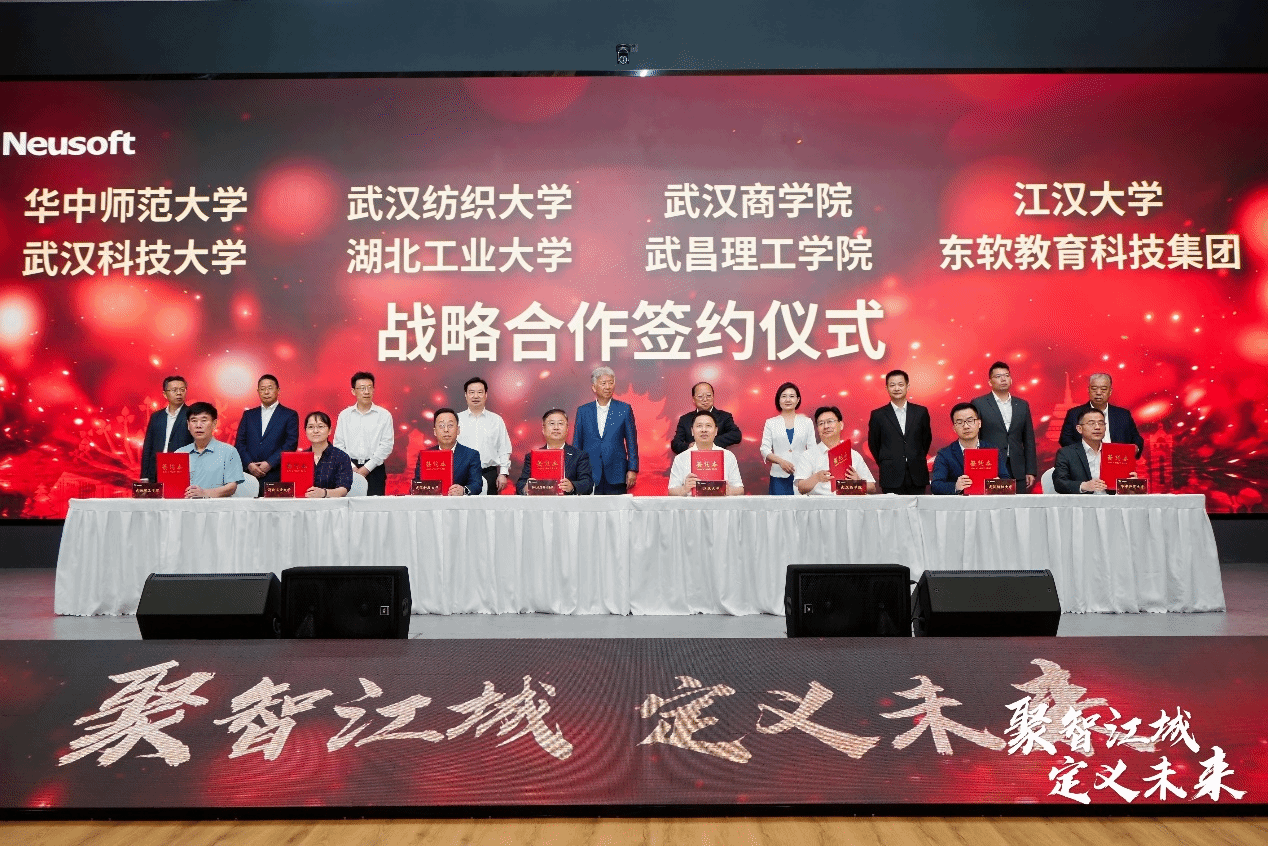 参加本次签约仪式的有华中师范大学、武汉科技大学、湖北工业大学、英国威廉集团等七所高校。武汉市委常委、武汉经开区党工委书记刘子清,武汉市副市长汪元程,武汉经开区管委会主任唐超,东软创始人、董事长刘积仁,东软集团副董事长兼CEO荣新节等领导共同见证签约。