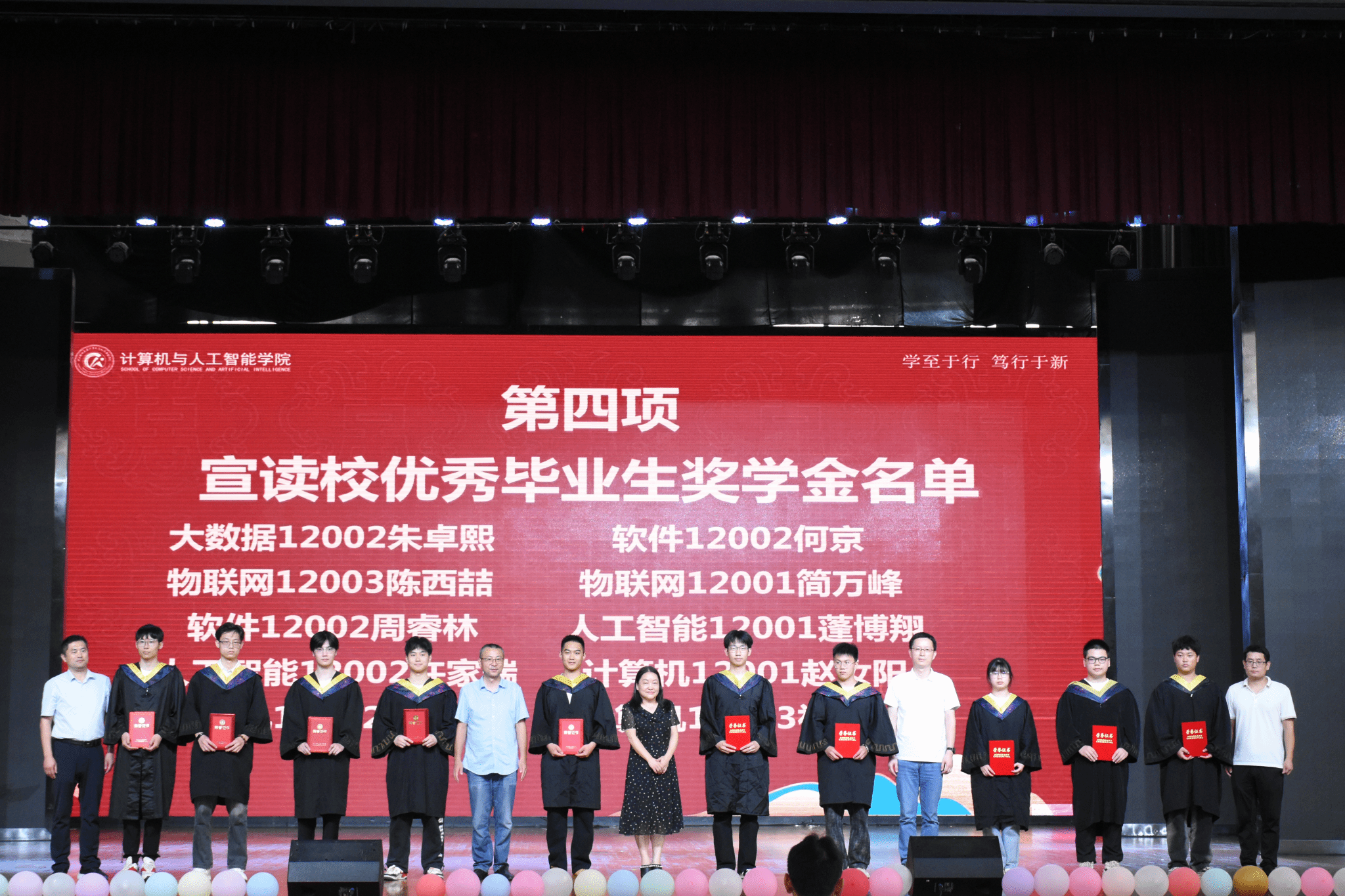 在全场师生热烈的掌声中,40名受表彰师生代表上台接受颁奖并合影留念。