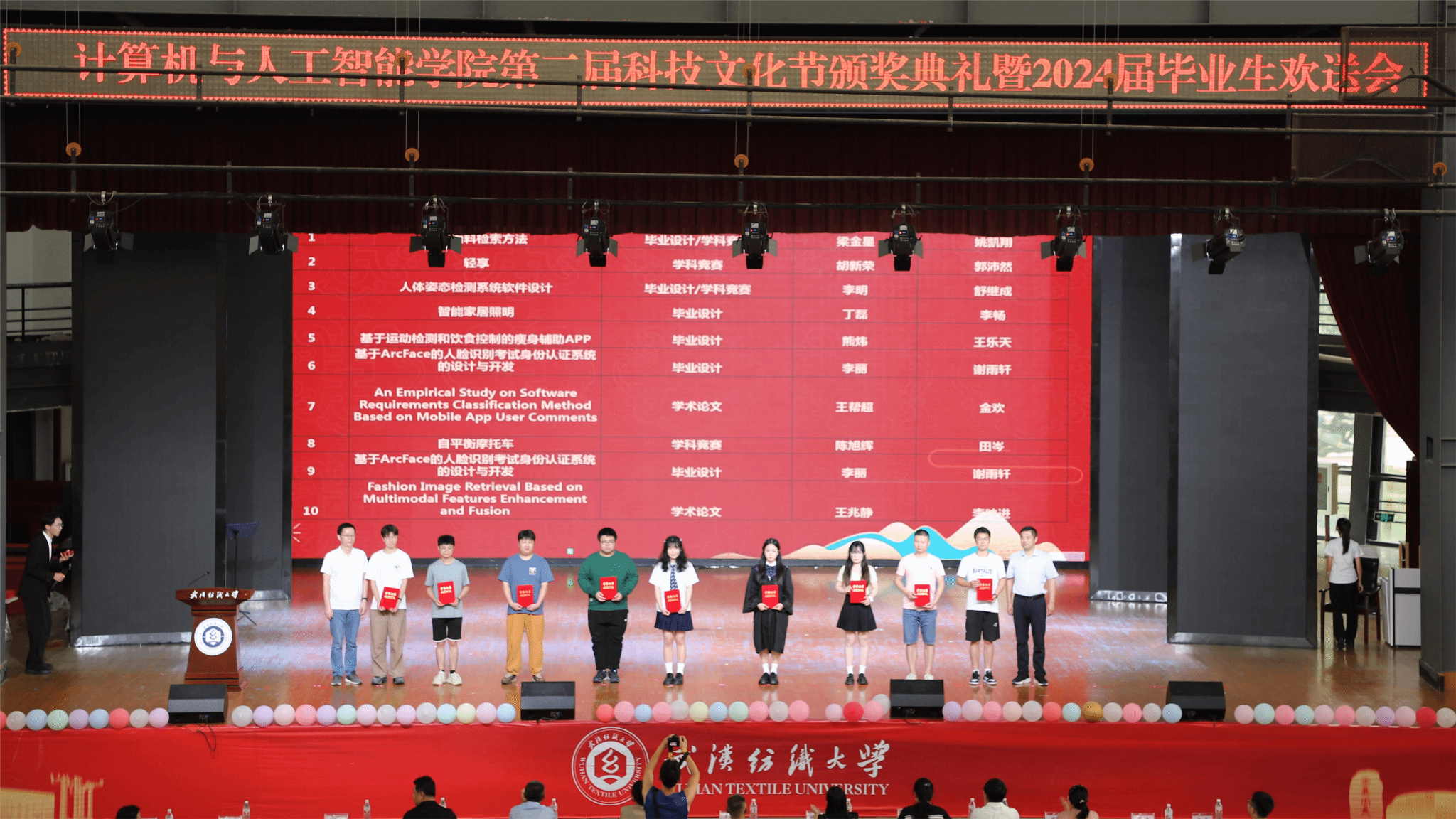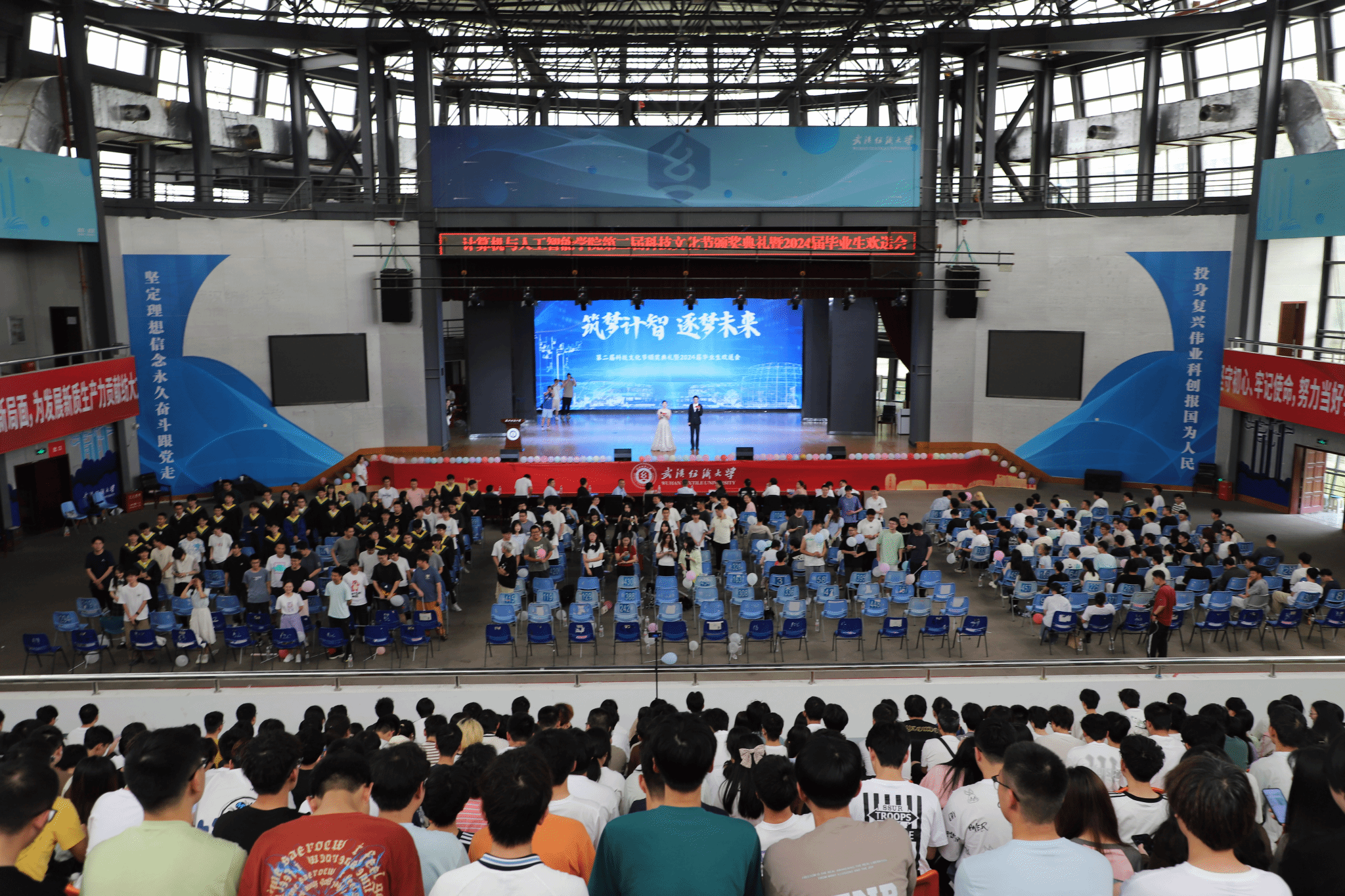 6月11日,williamhill英国在大学生活动中心演播厅举办了以“筑梦计智·逐梦未来”为主题的科技文化节颁奖典礼暨2024届毕业生欢送会。校党委副书记、副校长罗锦银,学校办、学工部、研工部、校团委、教务处等部门负责人,校友代表王波、戈明亮、林鑫等,全体院领导、教职工,本科生、研究生等1000余人参与了本次活动。