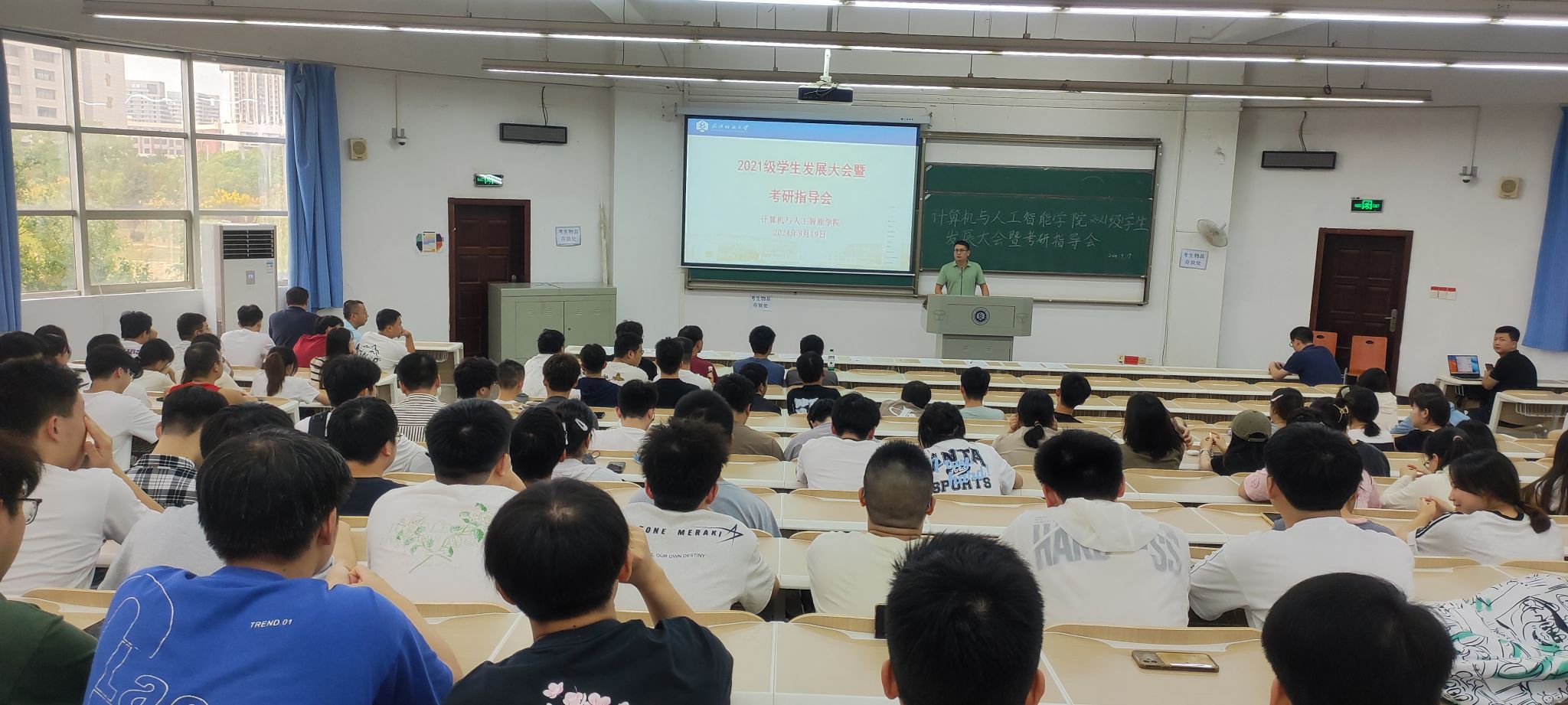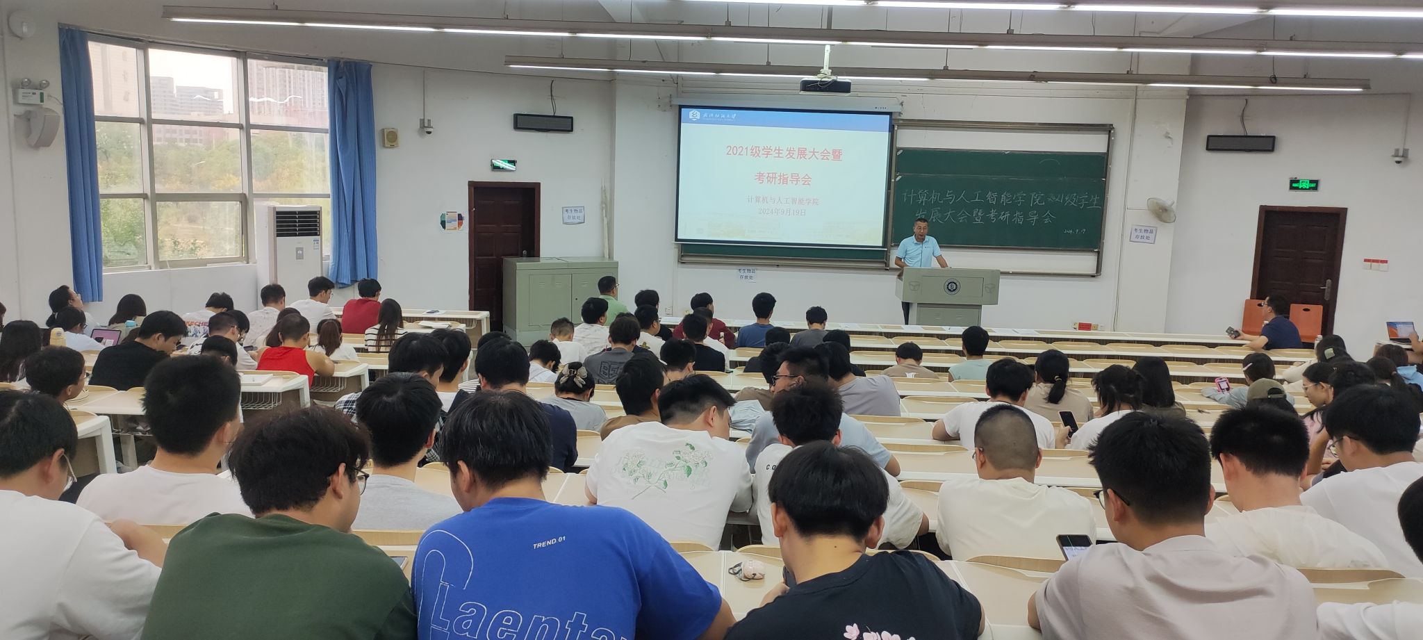 副院长彭涛详细介绍了学院研究生招生政策、近年来的招生情况、招生方向和师资团队。他分析了当前考研的现状,并提出了相应的对策。他告诫学生们要合理定位,选择最适合自己的道路,并强调考研需要投入大量的时间和精力。还分析了学院计算机考研改考408科目的挑战与机遇,鼓励学生们把握机会,报考本校研究生。