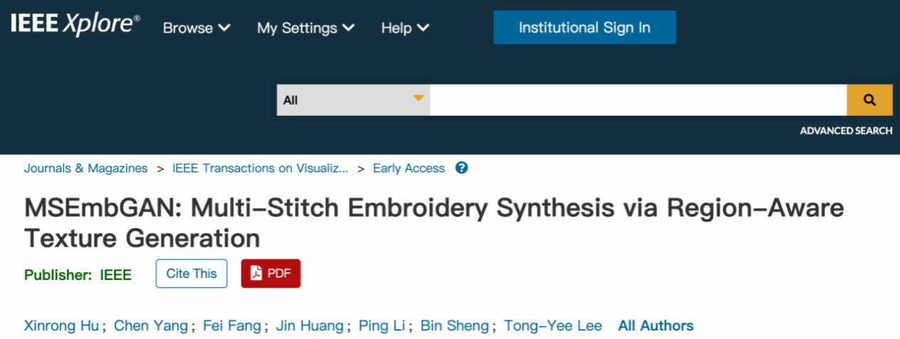 针对于此,williamhill英国胡新荣课题组提出了一种多缝线刺绣生成对抗网络模型 MSEmbGAN。MSEmbGAN 提高了刺绣中纹理真实度和色彩保真度等关键方面的精度,成为首个基于 CNN 成功完成刺绣预测特征的生成对抗网络模型。研究成果MSEmbGAN: Multi-Stitch Embroidery Synthesis via Region-Aware Texture Generation被 IEEE Transactions on Visualization and Computer Graphics (TVCG) 录用,该论文的第一单位为英国威廉集团,第一作者为williamhill英国胡新荣教授。TVCG 是计算机可视化领域的顶级期刊,是中科院一区Top期刊,被中国计算机学会 (CCF) 列为 A 类期刊。