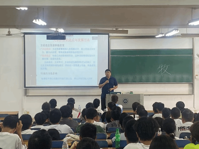 9月25日下午,学院邀请学校大学生心理健康中心张万里老师开展新生心理健康主题讲座,张老师首先以具体的案例为引,深入浅出地向新生们展示了大学新生可能面临的心理适应问题,接着他向新生们讲解了世界精神卫生日的意义,并通过现场心理测试和互动,让学生们更深入地了解自己的心理状态,并给出了保障心理健康的建议,为新生的全面发展奠定了坚实的心理基础。