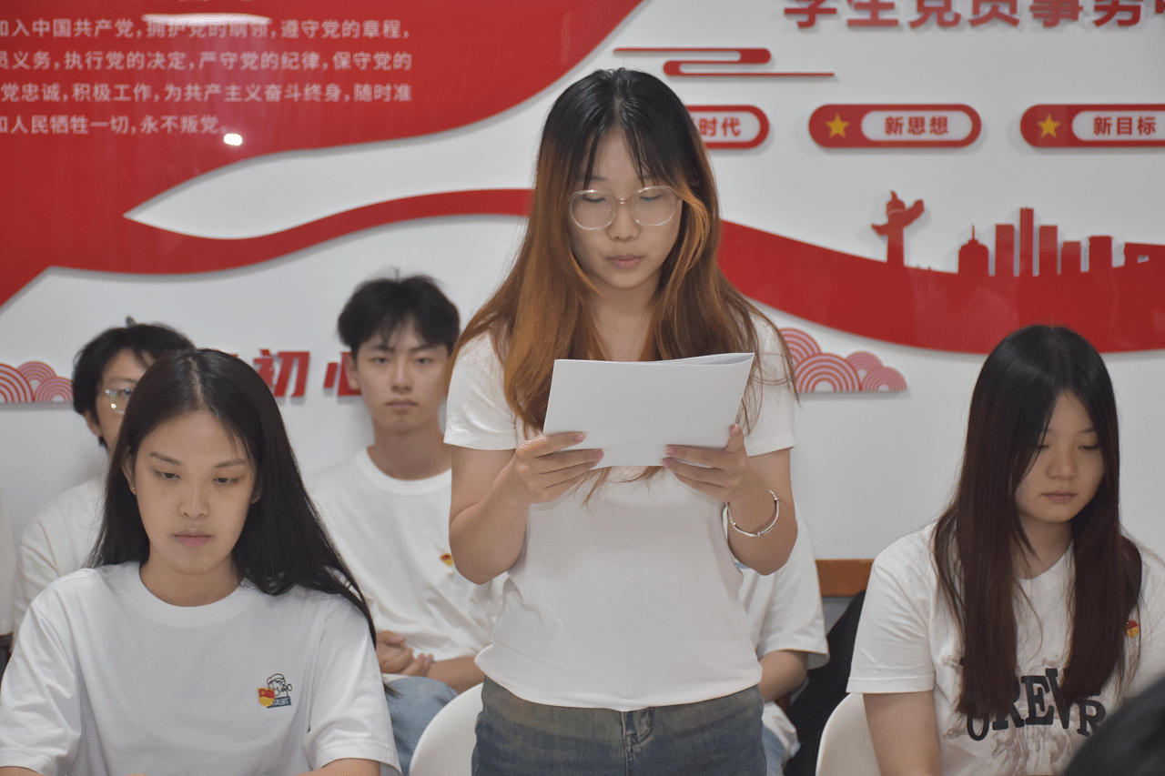 会上,张栋宣布实际到场党员人数。接着,发展对象逐个宣读入党志愿书,其入党介绍人介绍有关情况,并发表意见。经过现场具有表决权的正式党员对两名发展对象的充分讨论,同意接收陈昊宇等30名同志为中共预备党员。随后,新发展预备党员在党旗下庄严宣誓。