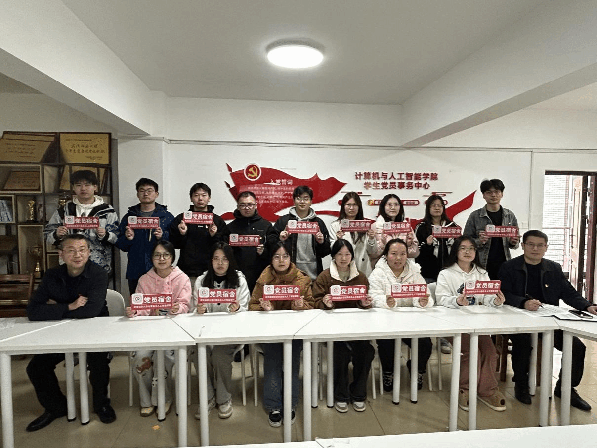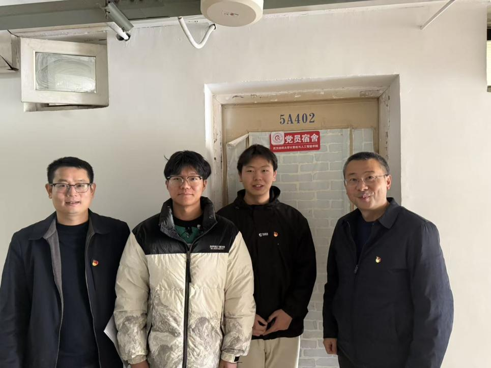 随后,学院领导、辅导员和党支部书记们分组深入学生公寓,亲自为党员宿舍挂牌。在宿舍与同学们亲切交谈,详细询问了他们的专业学习、项目进展和日常生活情况,并亲手将“党员宿舍”门牌张贴在宿舍门的醒目位置。