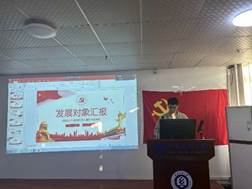 首先是预备党员汇报,本会议讨论沈彬,邢欢,胡博超,夏钦宇,4位同志接收正式党支部大会。申请转正同志汇报了自己在预备期间优点的发扬和缺点的改正情况以及需要向党组和说明的问题。入党介绍人介绍预备党员的有关情况,并对其能否转正表明意见。
