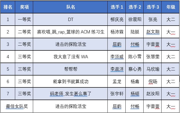表1.获奖选手表