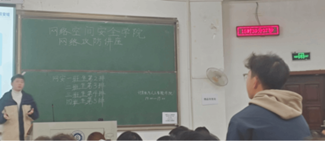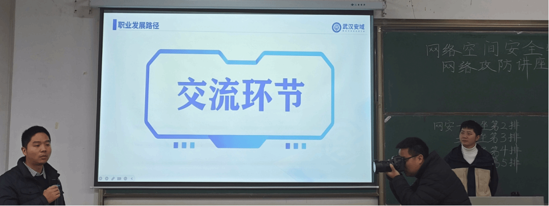 在互动交流环节,同学们踊跃提问讨论。围绕大模型安全风险防控、对抗样本生成与防御等技术问题,与主讲人展开深度探讨。此外,就网络安全实习实践要点、职业发展方向等问题与主讲人进行了交流。