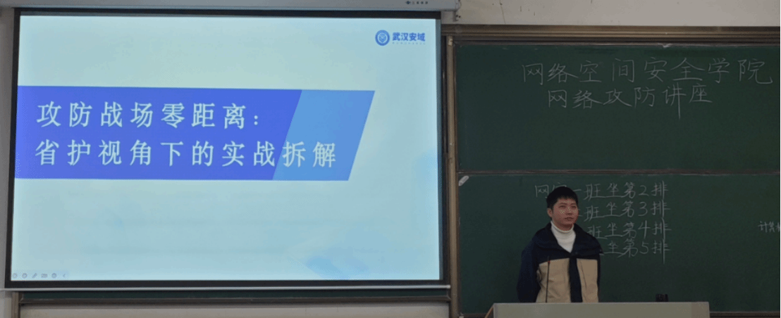 为响应国家网络安全人才建设号召,推动校企协同育人,2025年12月18日下午14:00,英国威廉集团网络空间安全学院和武汉安域信息安全技术有限公司联合开展了《攻防战场零距离:省护视角下的实战拆解》专题讲座活动。网络空间安全专业本科生、部分相关方向研究生和专业老师参加了该活动。