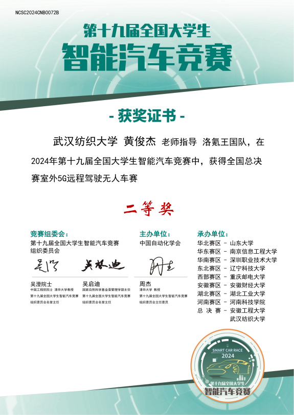 在教师团队的悉心指导下,学生在各类学科竞赛中捷报频传。本年度,课程团队教师钟赛尚博士指导本科生获全国三维数字化设计比赛全国二等奖2项、iCAN大学生创新创业大赛AI挑战赛全国一等奖1项、三等奖1项。黄俊杰博士指导学生在第19届全国大学生智能汽车竞赛中,获得全国总决赛二等奖。