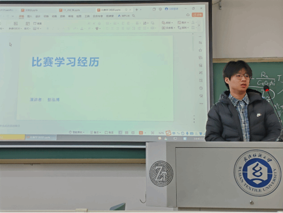 最后,彭泓博同学带来了他的分享,他重点讲述了自己在机器人比赛中的经历与收获。他谈到,机器人比赛不仅锻炼了他的创新思维与技术能力,也提升了团队协作和解决复杂问题的能力。彭同学还与同学们分享了如何在比赛中保持冷静、处理突发情况,以及如何将比赛经验转化为日常学习中的实际应用。